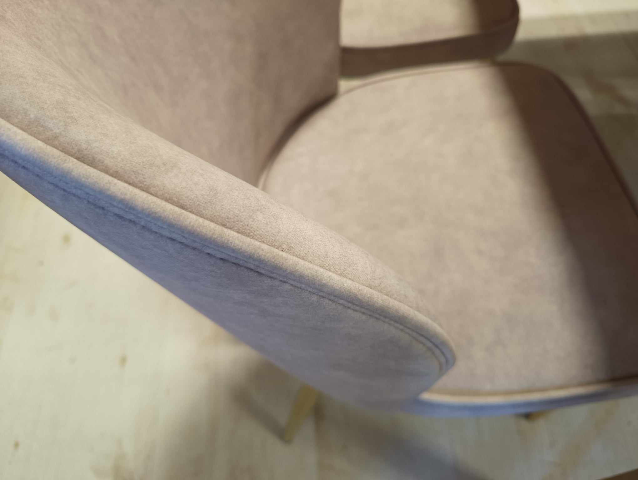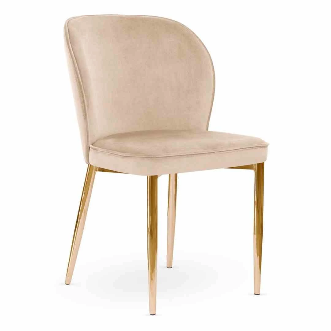 Nowoczesne krzesło tapicerowane Aine na złotej metalowej nodze.
