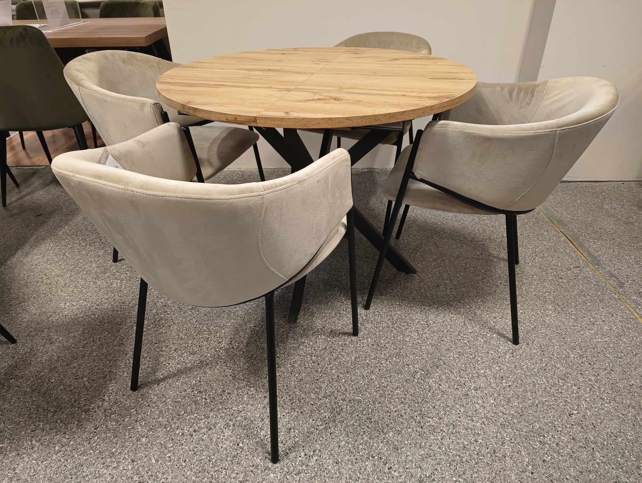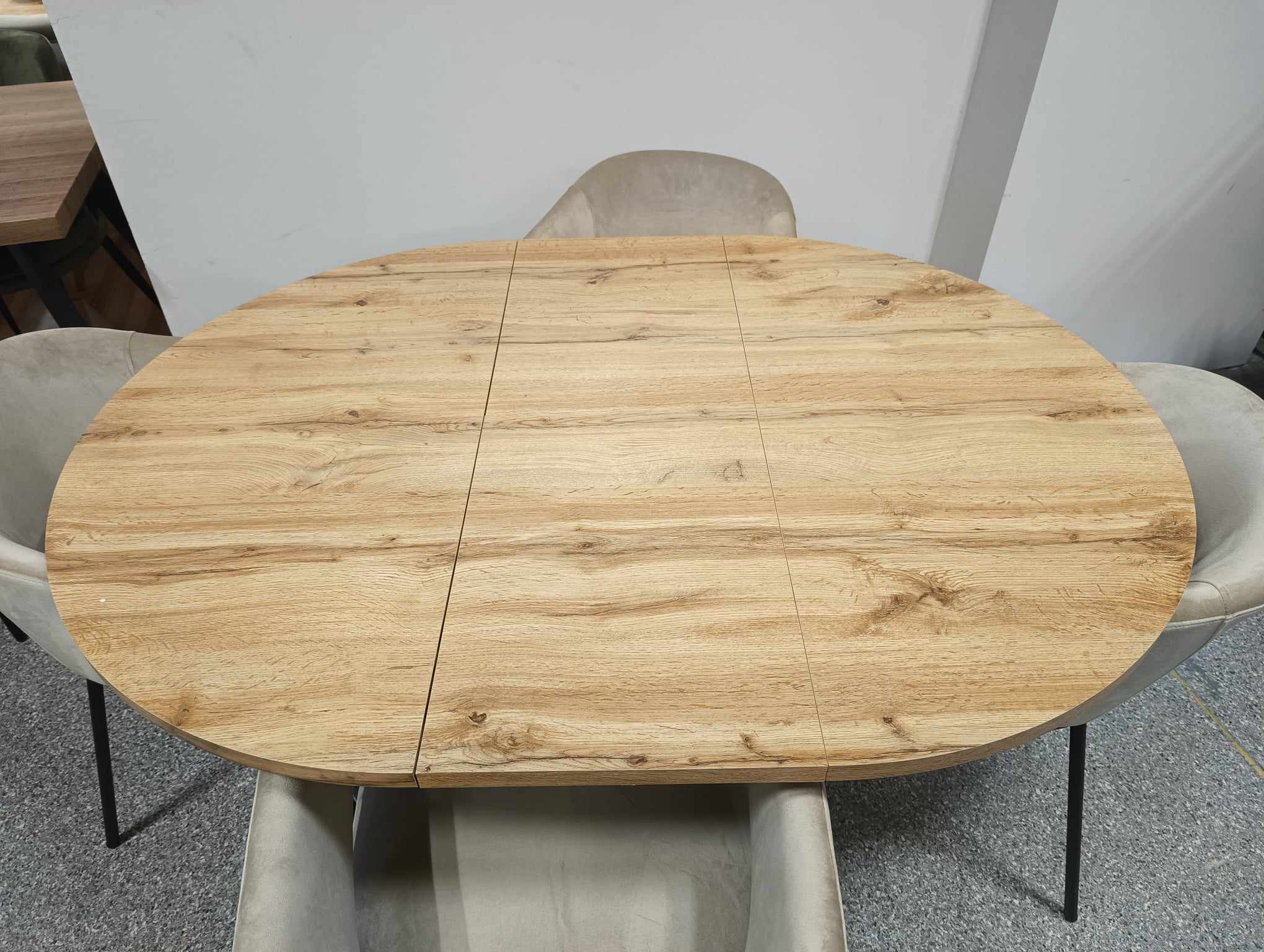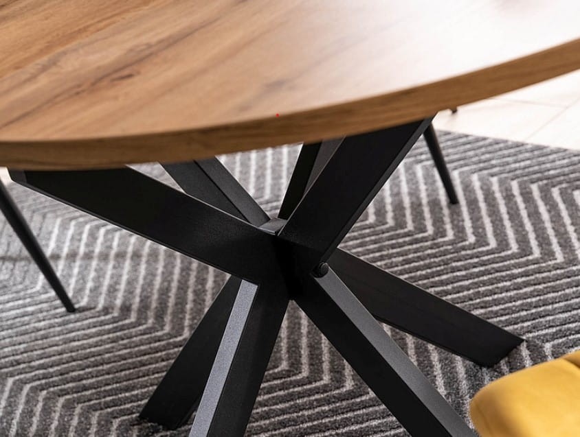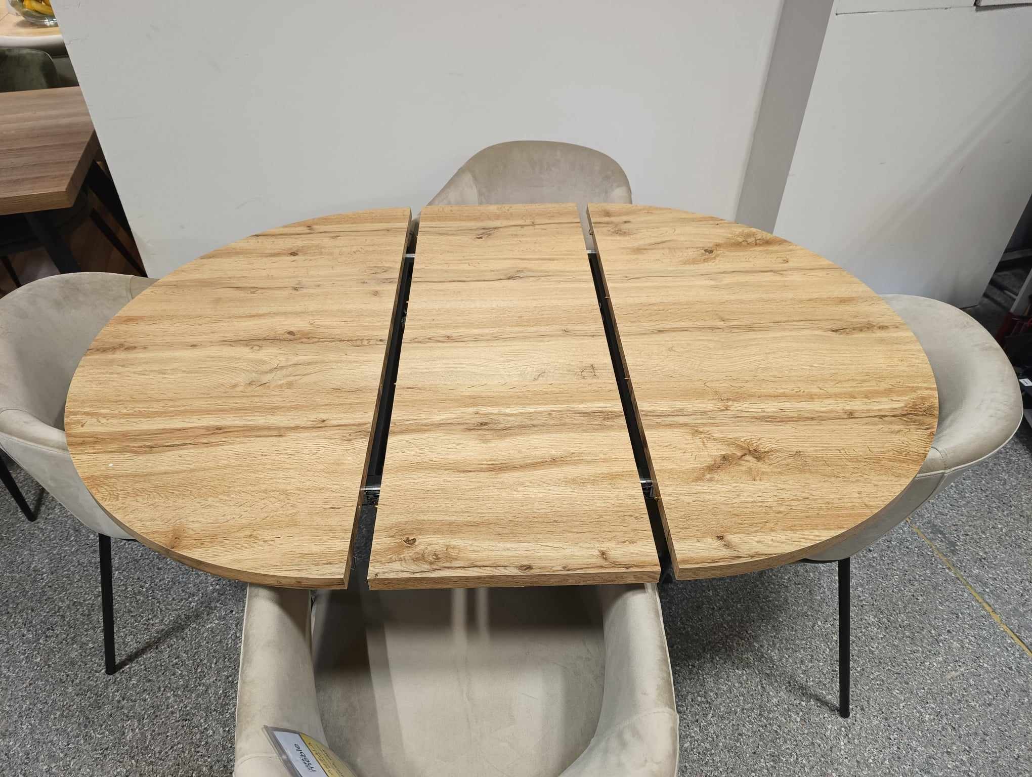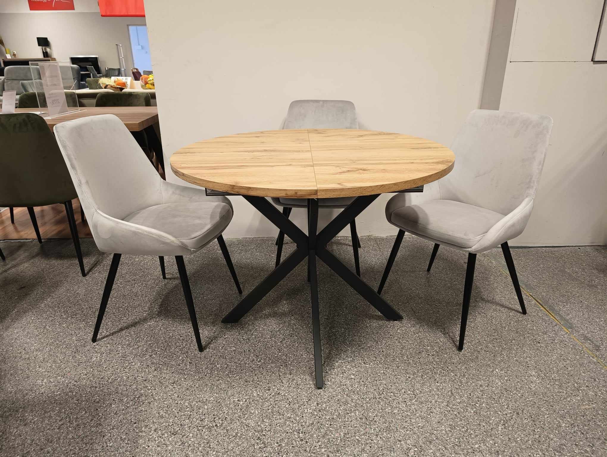 Stół Gaston to propozycja dla osób szukających niedużego stołu okrągłego w stylu loftowym, który jest rozkładany. Jego dodatkowym atutem jest wkładka która mieści się pod blatem i nie ma potrzeby przechowywania jej poza stołem. Blat wykonany został z wytrzymałej płyty laminowanej w okleinie dąb wotan, która ładnie odwzorowuje naturalne drewno. Nogi natomiast z metalu pomalowanego proszkowo na kolor czarny. Stół Gaston idealnie wpisze się we wszystkie wnętrza urządzone w industrialnym klimacie.