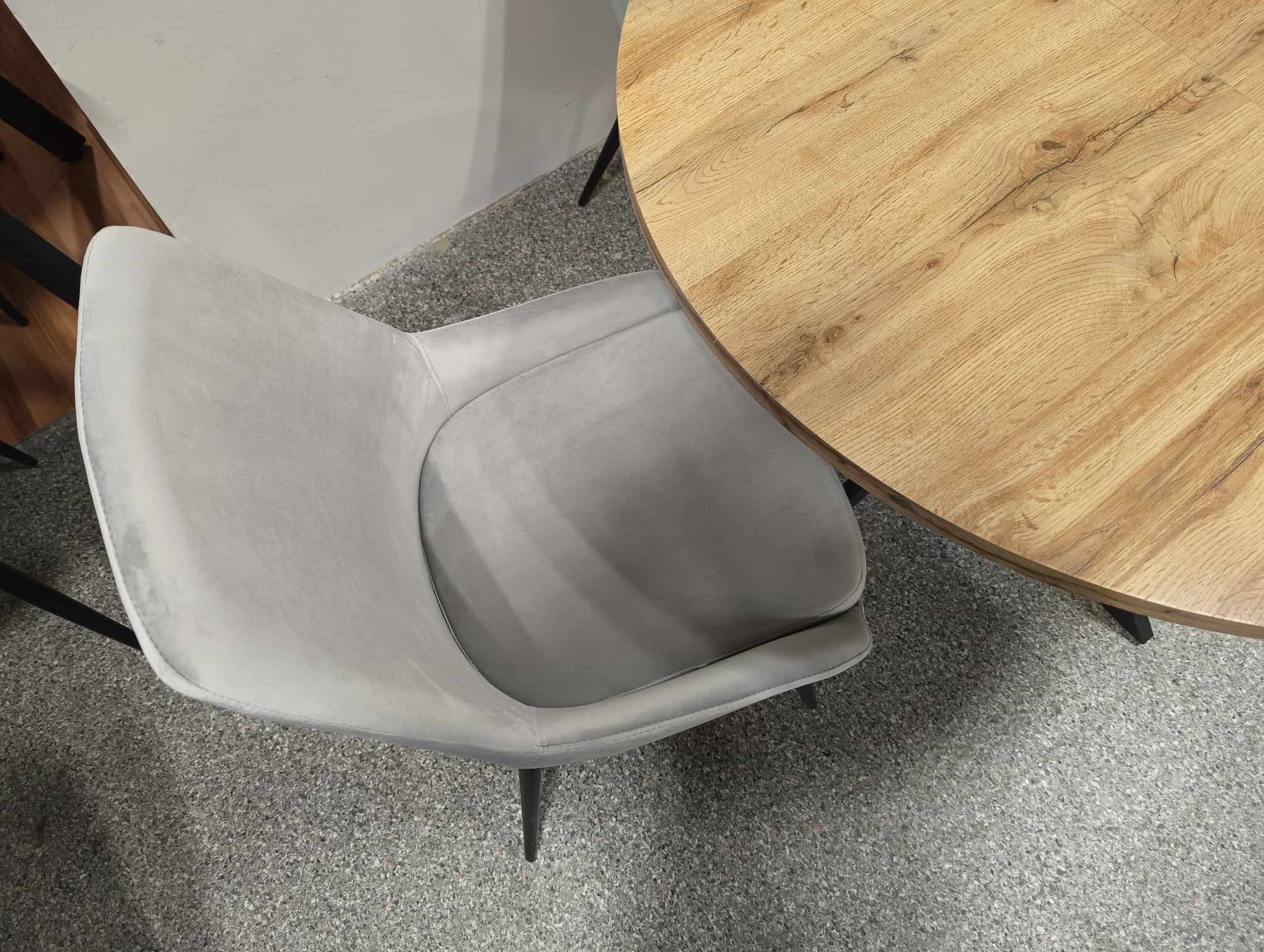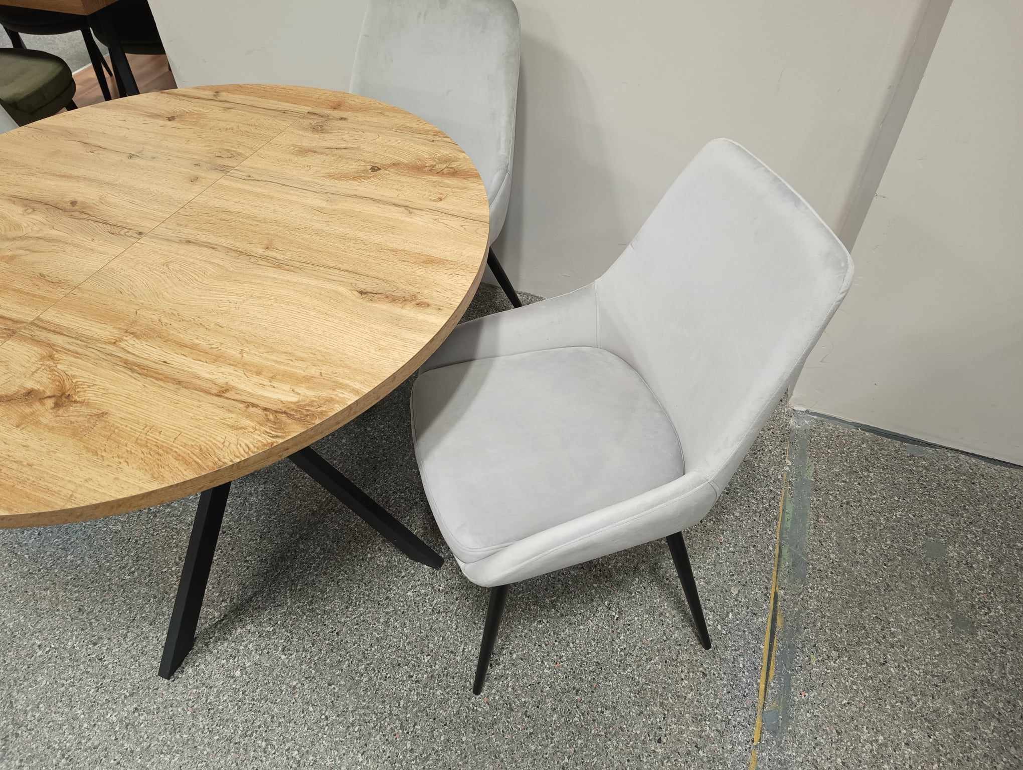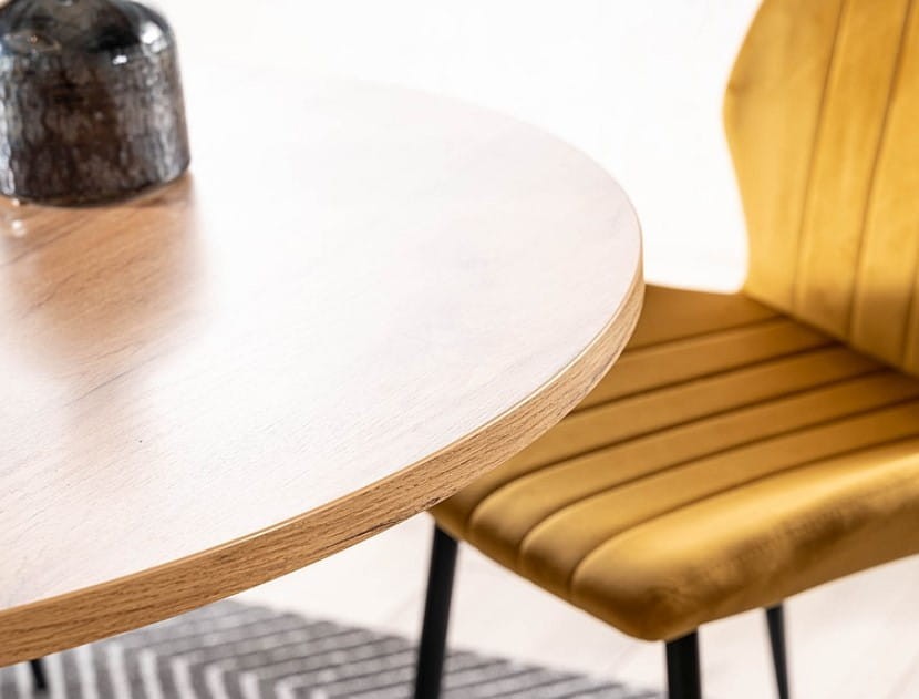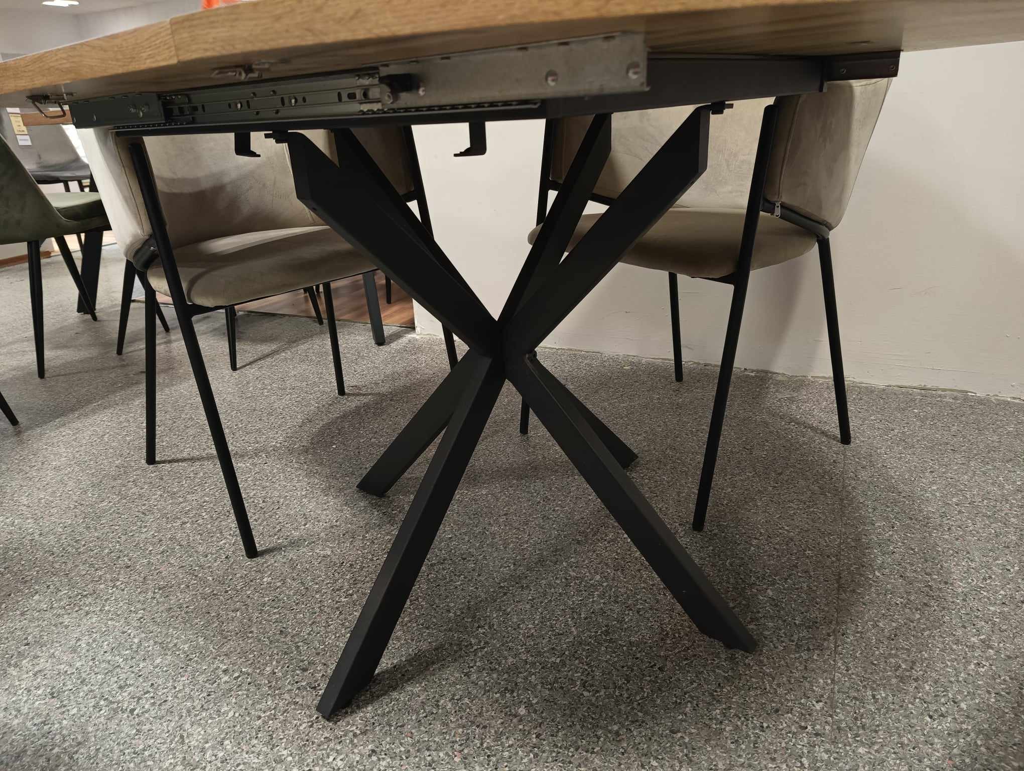 Stół Gaston to propozycja dla osób szukających niedużego stołu okrągłego w stylu loftowym, który jest rozkładany. Jego dodatkowym atutem jest wkładka która mieści się pod blatem i nie ma potrzeby przechowywania jej poza stołem. Blat wykonany został z wytrzymałej płyty laminowanej w okleinie dąb wotan, która ładnie odwzorowuje naturalne drewno. Nogi natomiast z metalu pomalowanego proszkowo na kolor czarny. Stół Gaston idealnie wpisze się we wszystkie wnętrza urządzone w industrialnym klimacie.