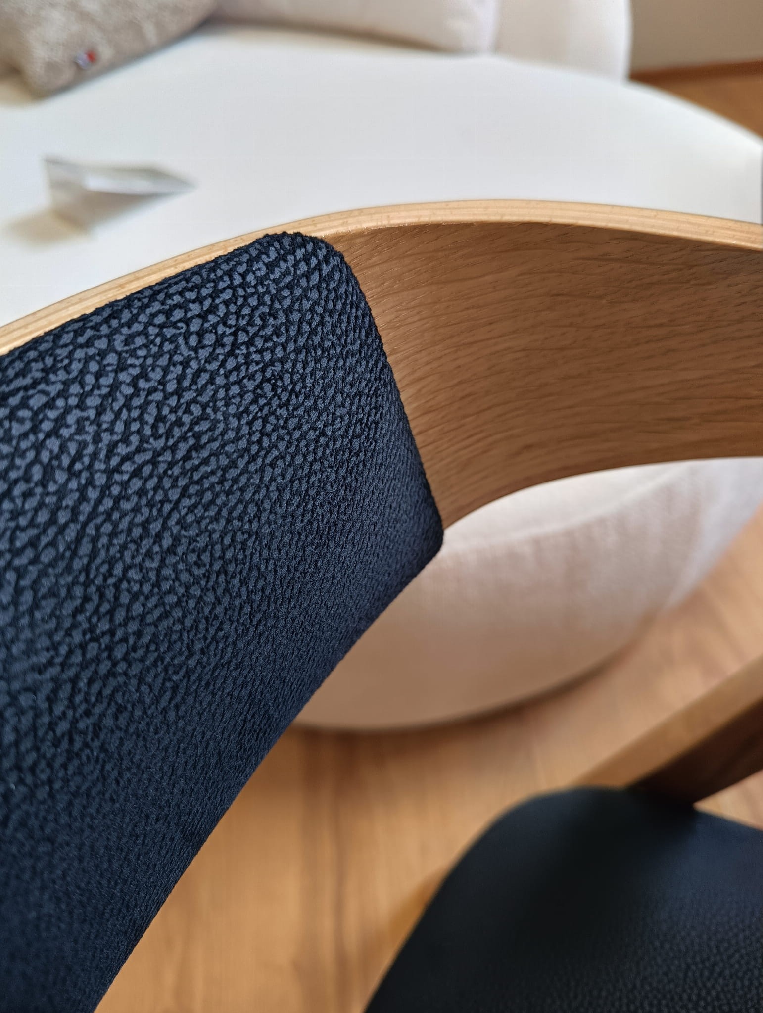 Model HANA osadzony jest na solidnym drewnianym stelażu, który zapewnia stabilność i trwałość. Kolor drewna do wyboru pozwala łatwo dopasować krzesło do aranżacji wnętrza – od nowoczesnych po bardziej klasyczne.