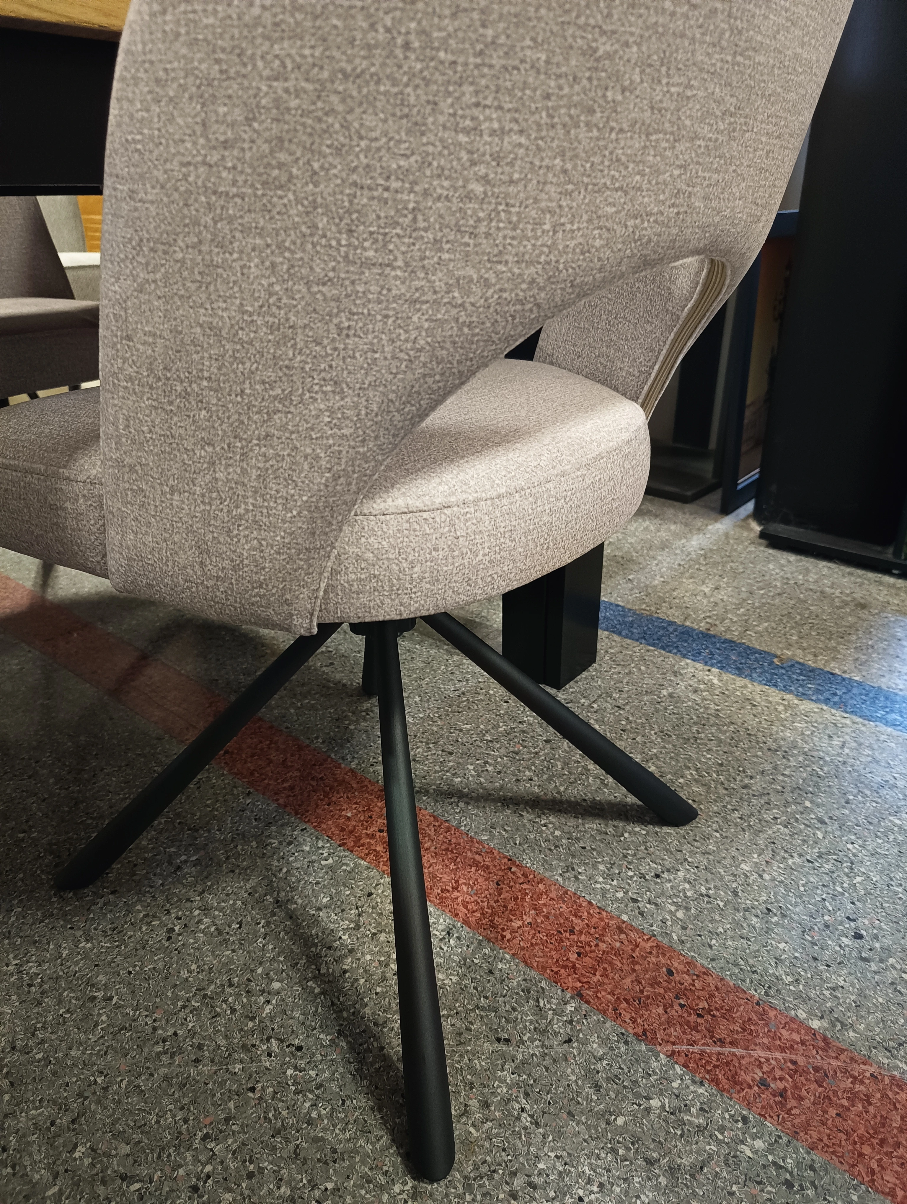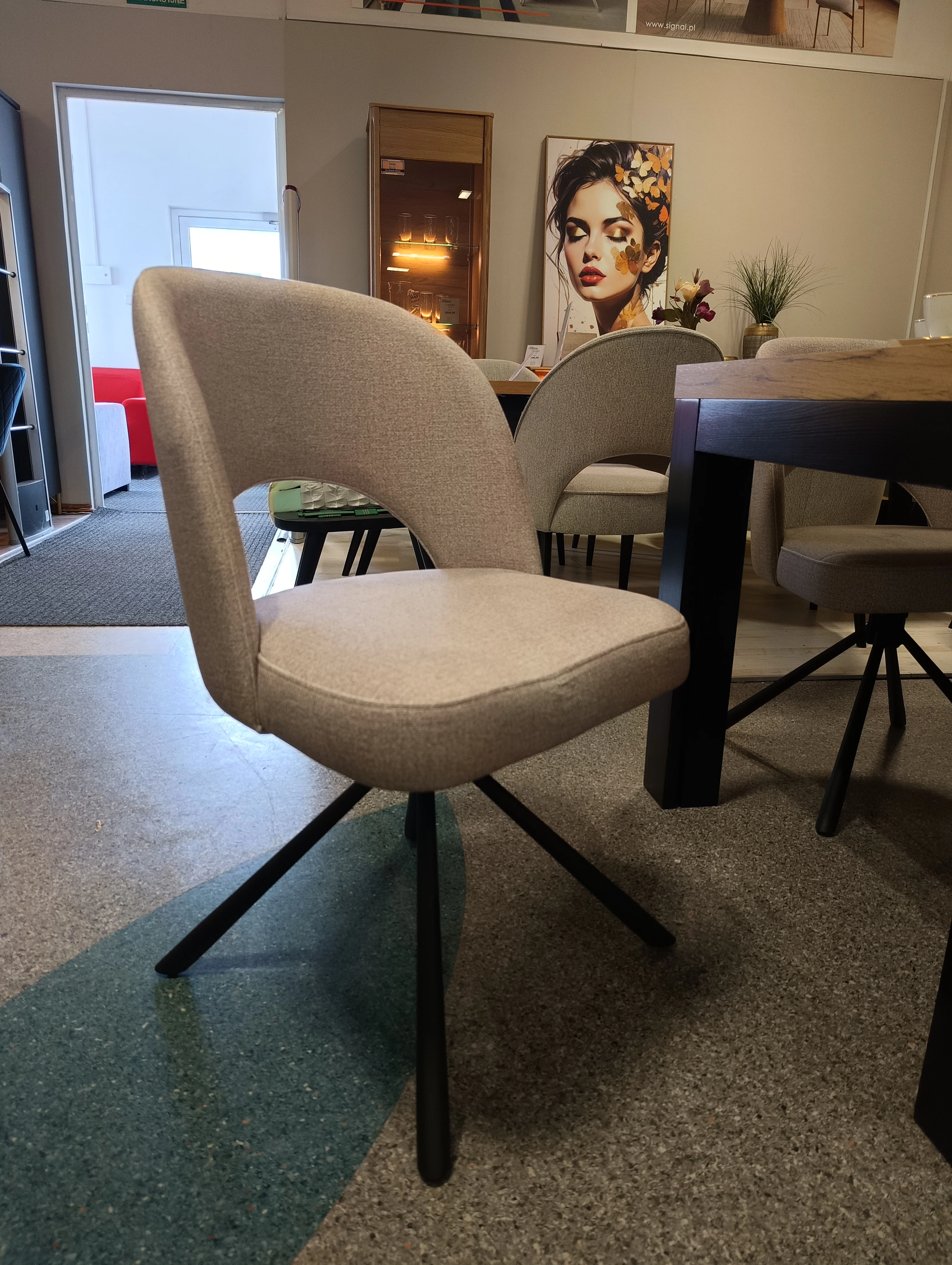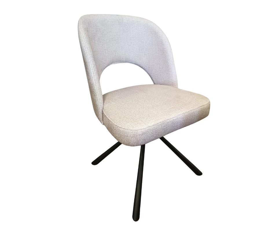 Krzesło wyróżnia się elegancką formą z charakterystycznym otworem w oparciu, solidnym metalowym stelażem i funkcją obrotu 180° z mechanizmem autopowrotu. Dzięki temu zawsze wraca do wyjściowej pozycji – idealne rozwiązanie do codziennego użytkowania. Miękka pianka oraz zastosowane pasy tapicerskie w siedzisku zapewniają maksimum komfortu. Krzesło Loop to polski produkt wykonany z najwyższej jakości materiałów.