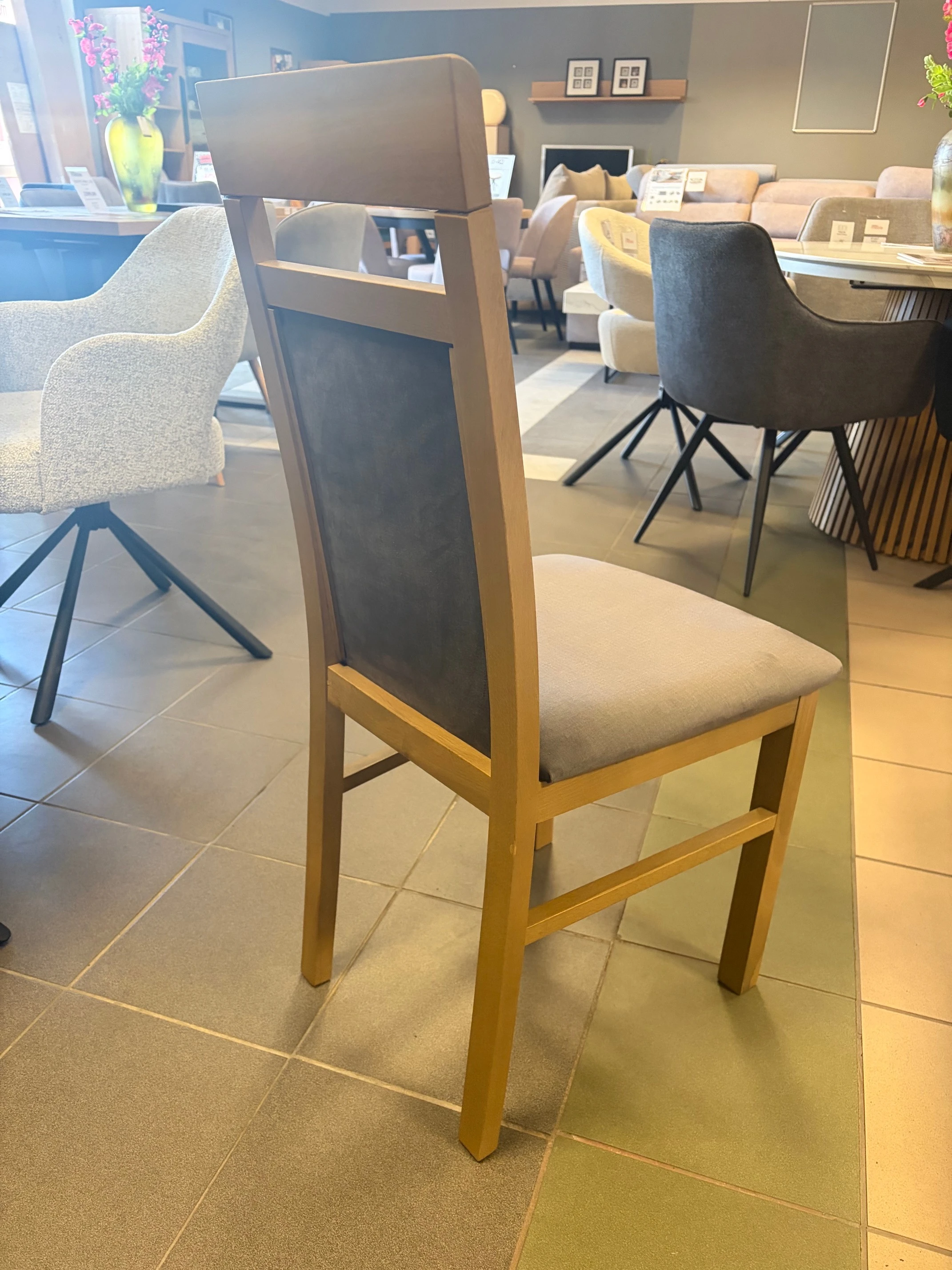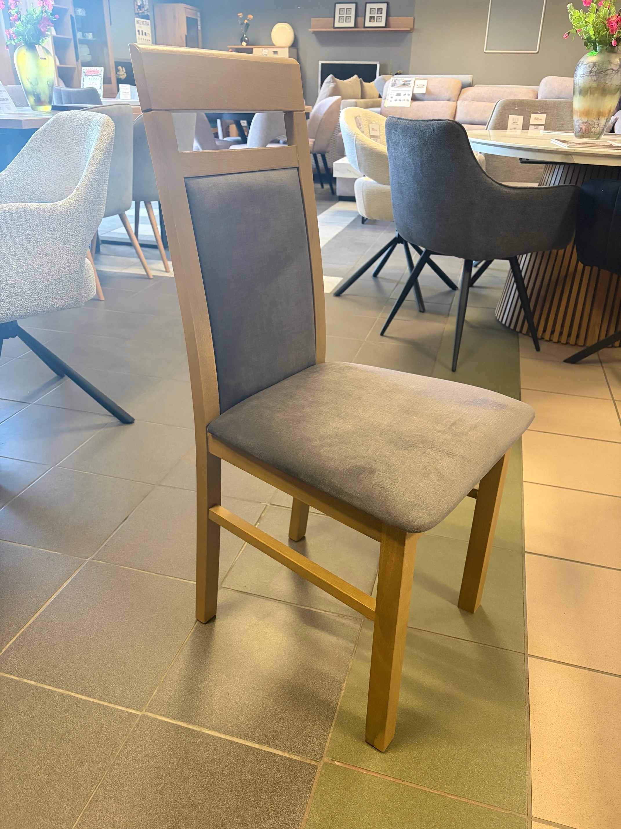 Eleganckie i solidne krzesło drewniane wykonane z wysokiej jakości drewna bukowego to idealne rozwiązanie do jadalni, salonu lub kuchni. Dzięki połączeniu naturalnego wybarwienia dąb oraz miękkiego, tapicerowanego siedziska w kolorze szarym, mebel doskonale wpisuje się zarówno w nowoczesne, jak i klasyczne aranżacje wnętrz.