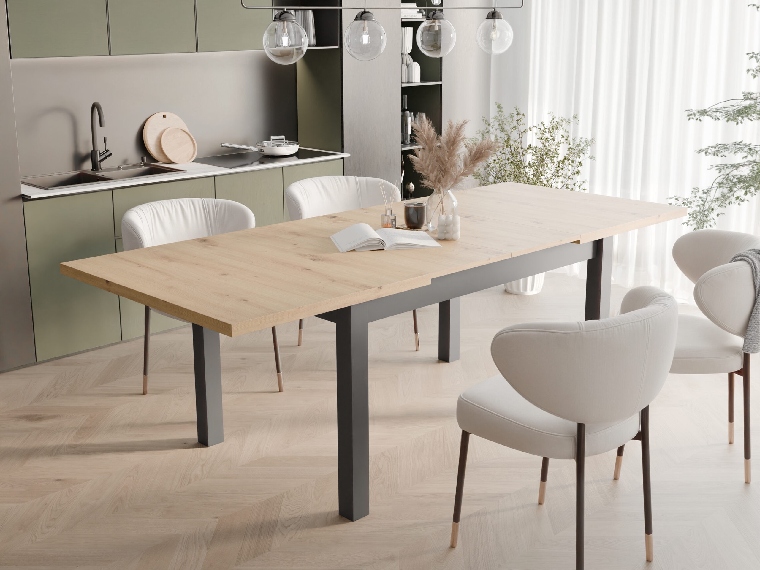 Szukasz funkcjonalnego stołu, który dopasuje się do Twojej przestrzeni? Stół rozkładany ARIS 150 to idealne rozwiązanie do małych mieszkań, kuchni oraz nowoczesnych salonów. Dzięki możliwości rozłożenia z 150 cm aż do 230 cm zyskujesz wygodne miejsce zarówno na codzienne posiłki, jak i większe spotkania rodzinne.