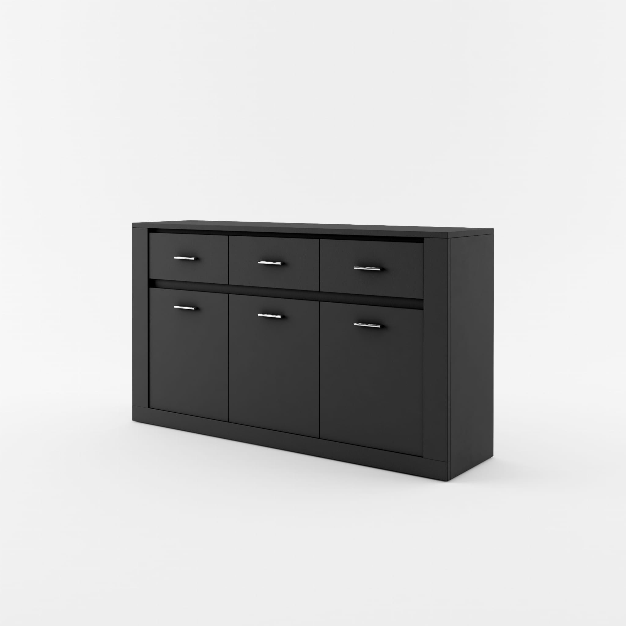 Bardzo pojemna komoda z trzema szufladami i trojgiem drzwi pomieści sporo rzeczy. Dedykowana pokojom dziennym, jadalniom i sypialniom. Mebel wykonano z wysokiej jakości materiałów: z wytrzymałej płyty laminowanej wykończonej trwałym obrzeżem ABS.