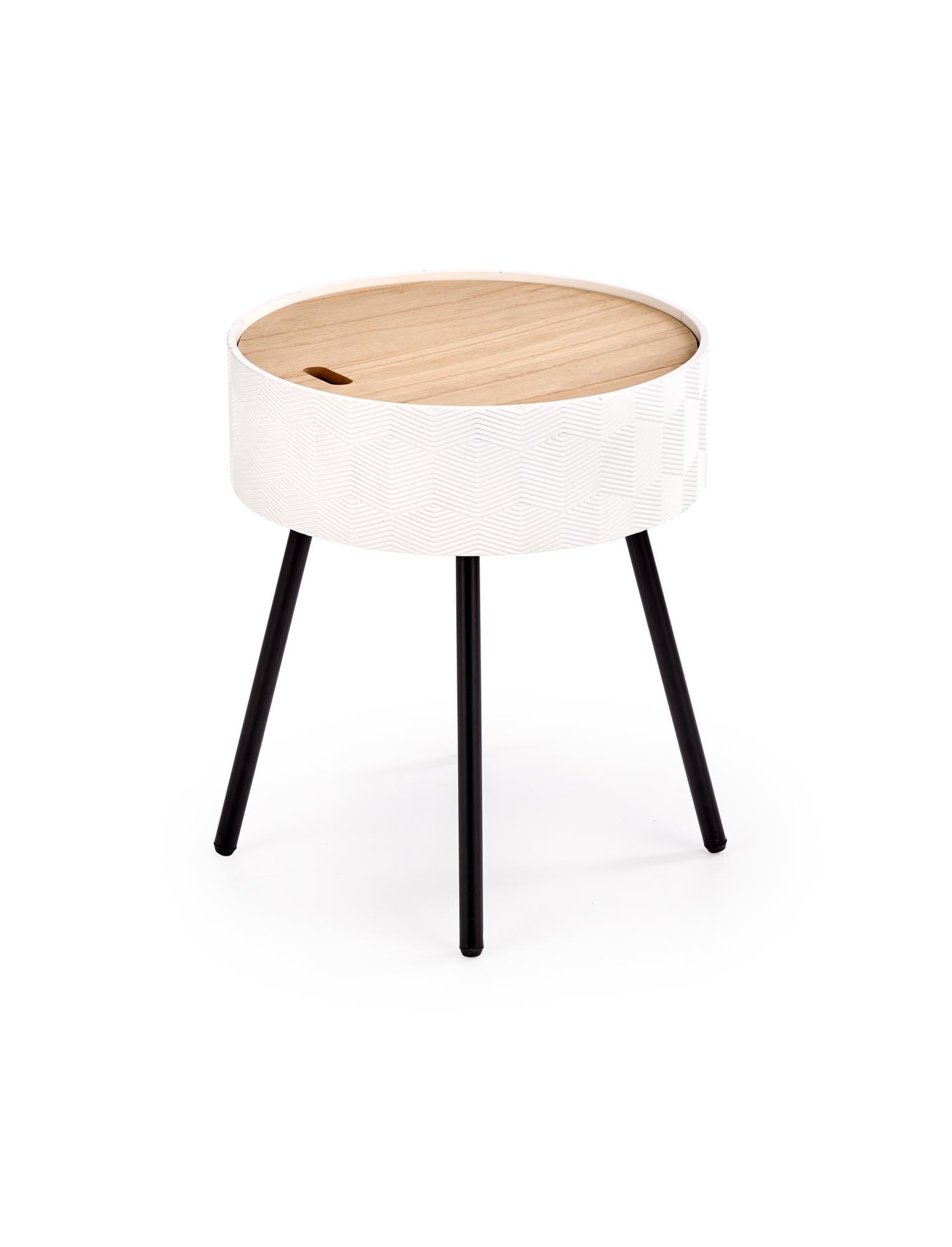 wymiary: 38/45 cm, materiał: MDF lakierowany / MDF + okleina naturalna / stal malowana proszkowo, kolor: biało - czarny