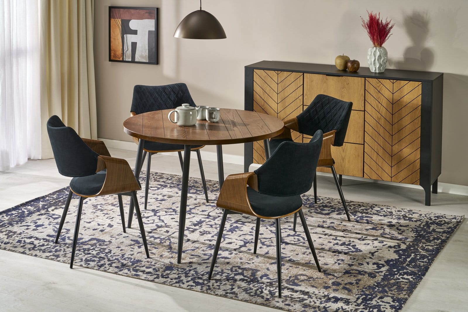BARRY stół okrągły, blat - orzechowy, nogi - czarny (1p=1szt)