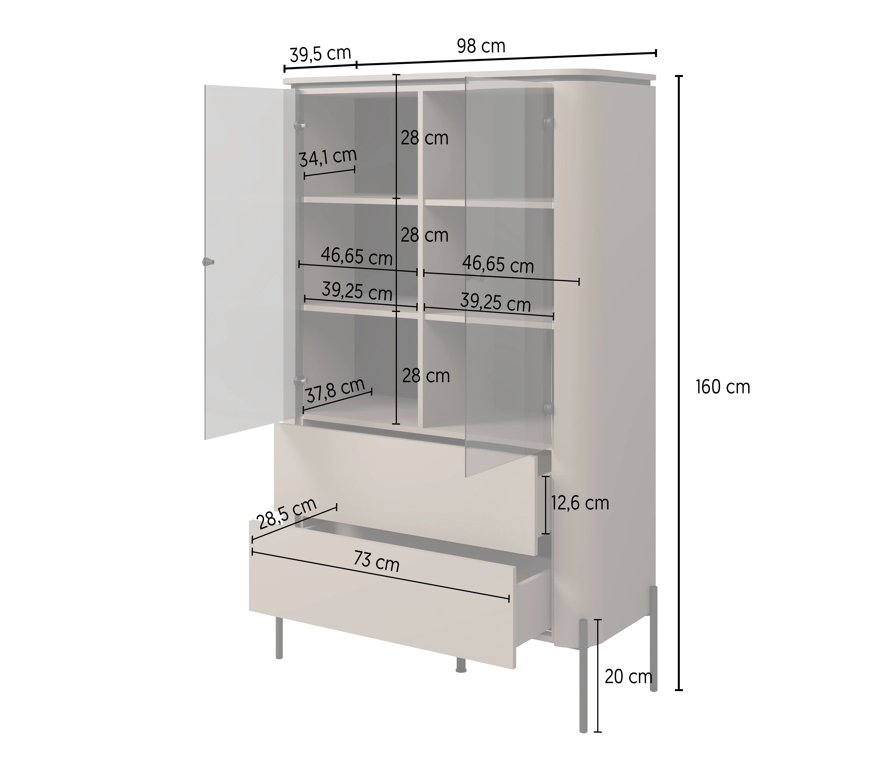 - 4 półki w części przeszklonej – praktyczna organizacja i estetyczna prezentacja