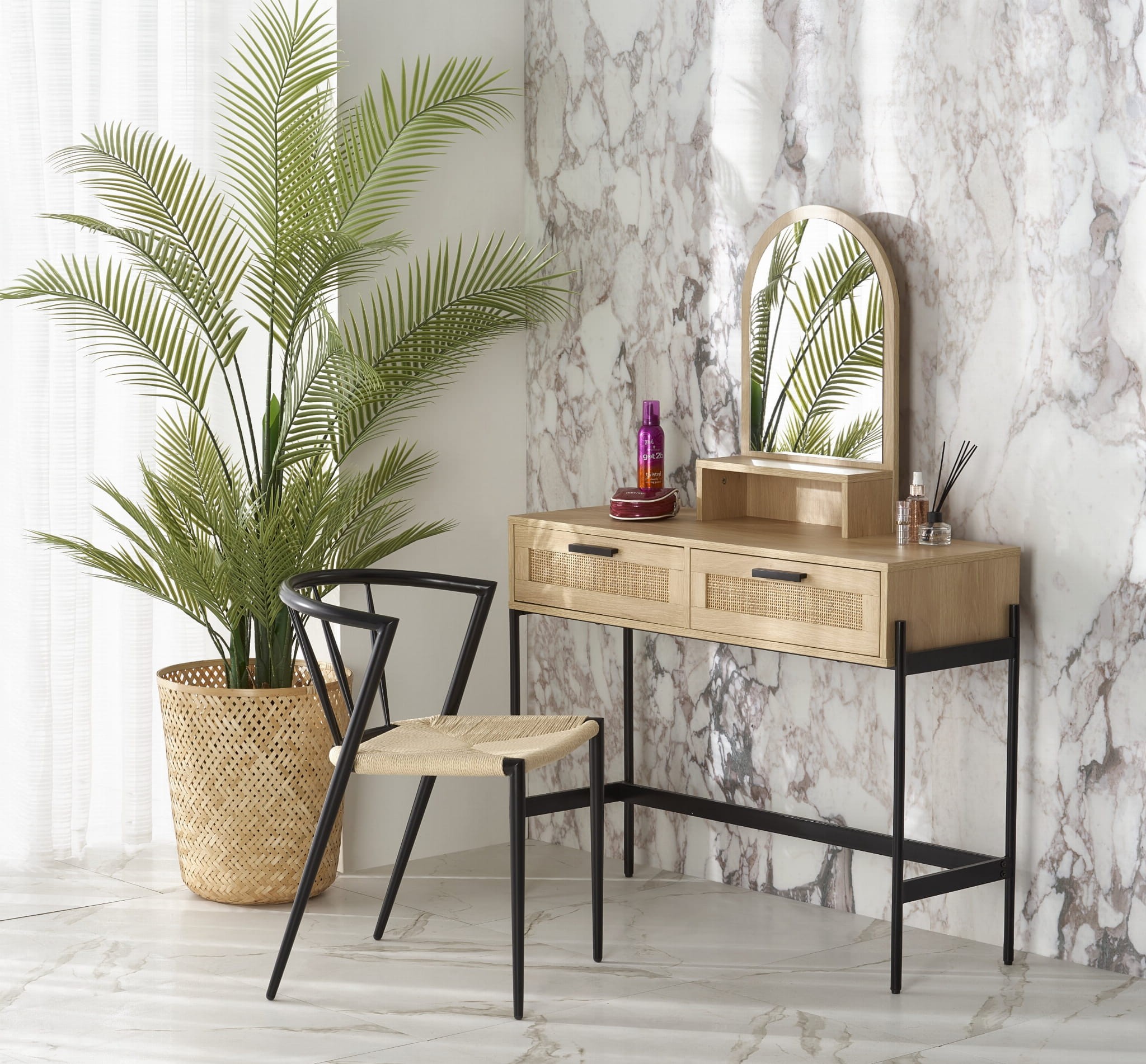 wymiary: 104/35/136 cm, materiał: lustro / płyta meblowa okleinowana - melamina / rattan naturalny / stal malowana proszkowo, kolor: naturalny - czarny