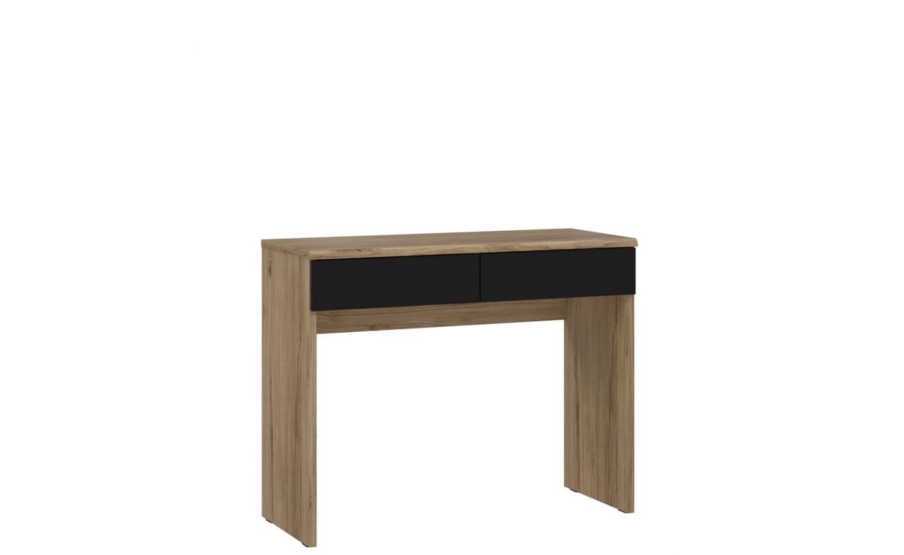 Dalate to kolekcja mebli do sypialni, która sprawia wrażenie przytulności i elegancji. Kontrastujące dekory dębu catania oraz matowej czerni, tworzą niepowtarzalne połączenie. W skład kolekcji wchodzą dwa rodzaje łóżek: z podnoszonym stelażem i pojemnikiem lub wariant na wysokich metalowych nogach. Duża pojemna szafa o dwóch frontach przesuwnych i dwóch otwieranych tradycyjne zapewnia naprawdę sporo miejsca do przechowywania i jest bardzo praktyczna.
