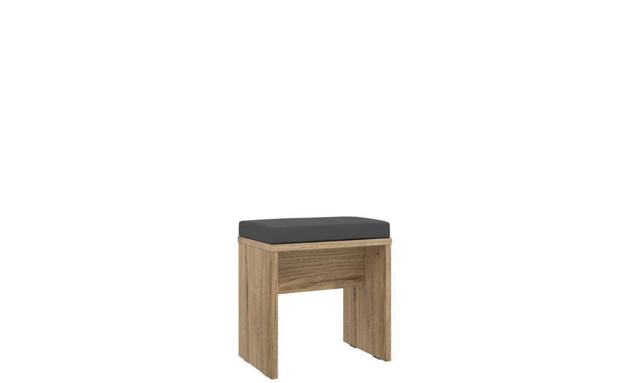 Meble Dalate utrzymane są w prostej, geometrycznej formie, zaprojektowanej z myślą o miłośnikach nowoczesnych wnętrz. Tkanina zastosowana na zagłowiu łóżka oraz siedzisku stołka toaletki jest miękka i przyjemna w dotyku. Proste, ciemne uchwyty idealnie pasują do stylistyki mebli, a czarne listwy nadają kolekcji oryginalny charakter.