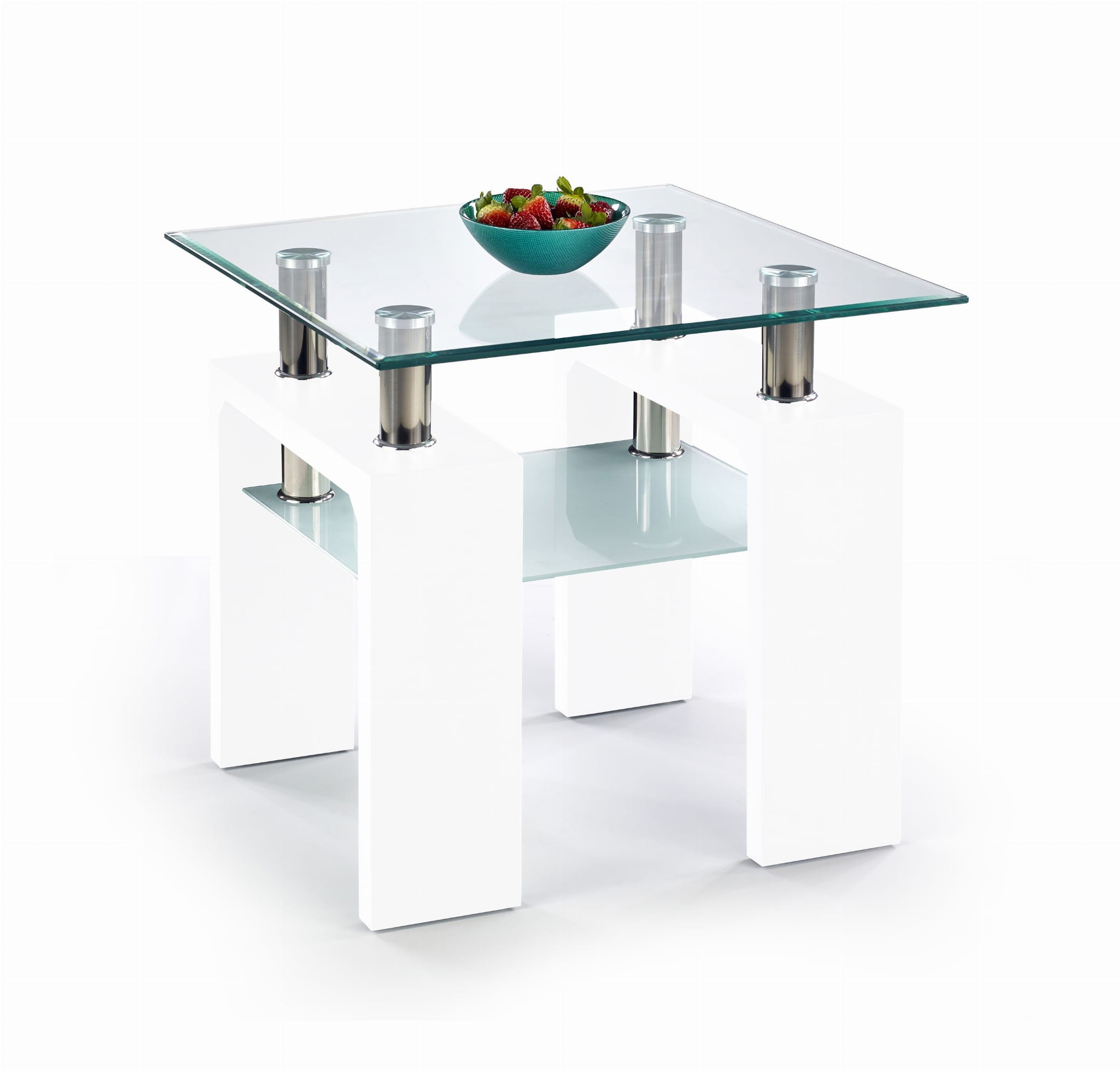 wymiary: 60/60/55 cm, materiał: szkło / MDF lakierowany, kolor: biały