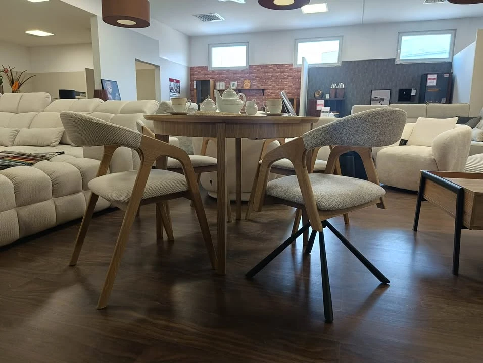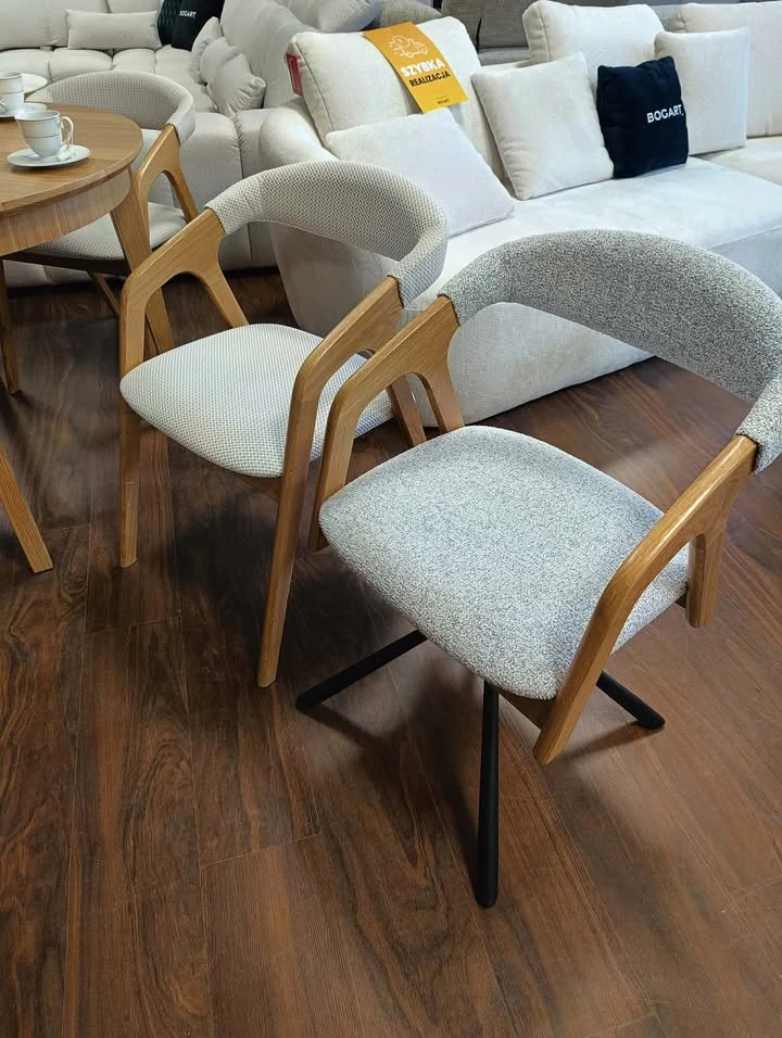 Model nadal oferuje wysoki komfort siedzenia dzięki miękkiemu siedzisku i dobrze wyprofilowanemu oparciu. Całość tworzy wygodne krzesło tapicerowane, które sprawdzi się zarówno podczas posiłków, jak i dłuższego siedzenia.