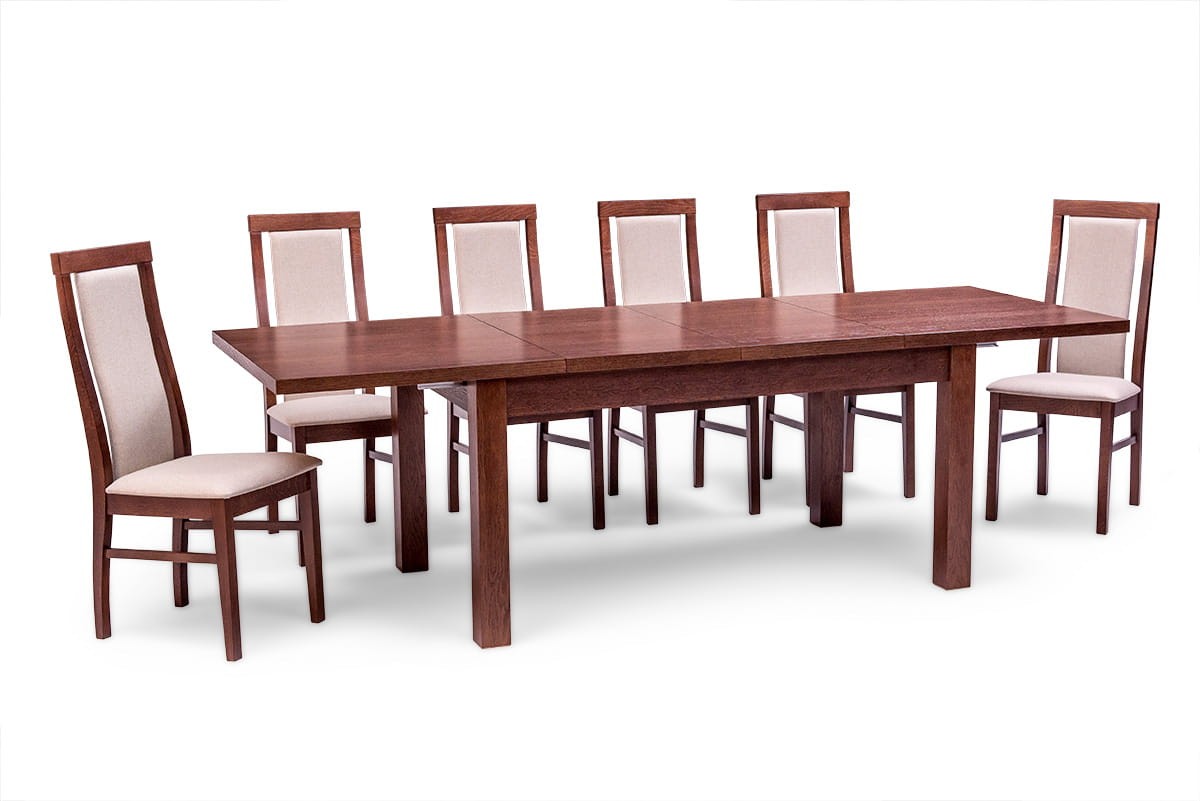 Stół dębowy FIGARO to uniwersalny stół, pasujący do każdego wnętrza. Duży wybór rozmiarów pozwala dopasować go zarówno do małego jak i bardzo dużego pomieszczenia. Prowadnice metalowe, synchroniczne (wystarczy z jednej strony pociągnąć aby blaty się rozjechały) bardzo łatwe i szybkie w użytkowaniu.