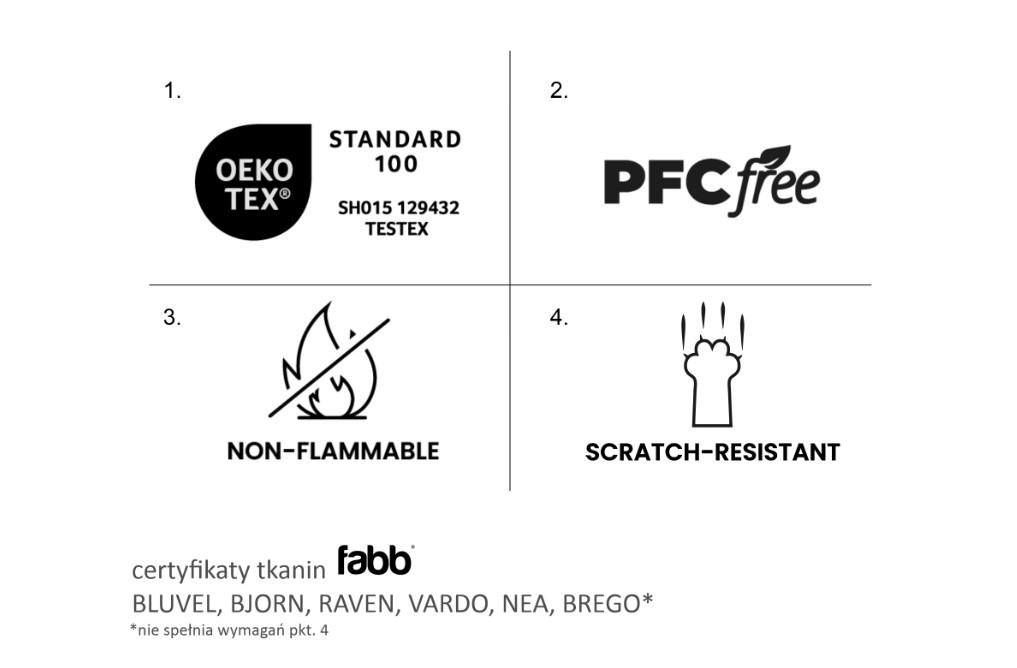tapicerka z nowoczesnej tkaniny Raven (producent Fabb) – trwała, stylowa i przyjemna w dotyku