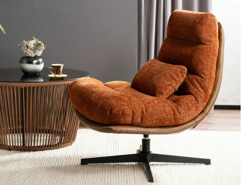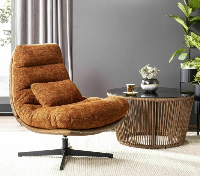 Fotel obrotowy FELICIA to propozycja dla osób ceniących nowoczesny design, komfort i funkcjonalność w jednym. Doskonale sprawdzi się zarówno w eleganckim salonie, jak i przytulnym kąciku wypoczynkowym. Tapicerowany wysokiej jakości tkaniną Raven marki Fabb – stylową i trwałą szenilą – zachwyca subtelnym połyskiem i delikatnym cieniowaniem, które nadaje meblowi głębi i charakteru. Materiał ten wyróżnia się odpornością na blaknięcie, mechacenie i zabrudzenia, dzięki czemu fotel przez długi czas zachowa estetyczny wygląd. Tył fotela pokryto trwałą ekoskórą, która nie tylko ułatwia pielęgnację, ale też podkreśla nowoczesną formę mebla.