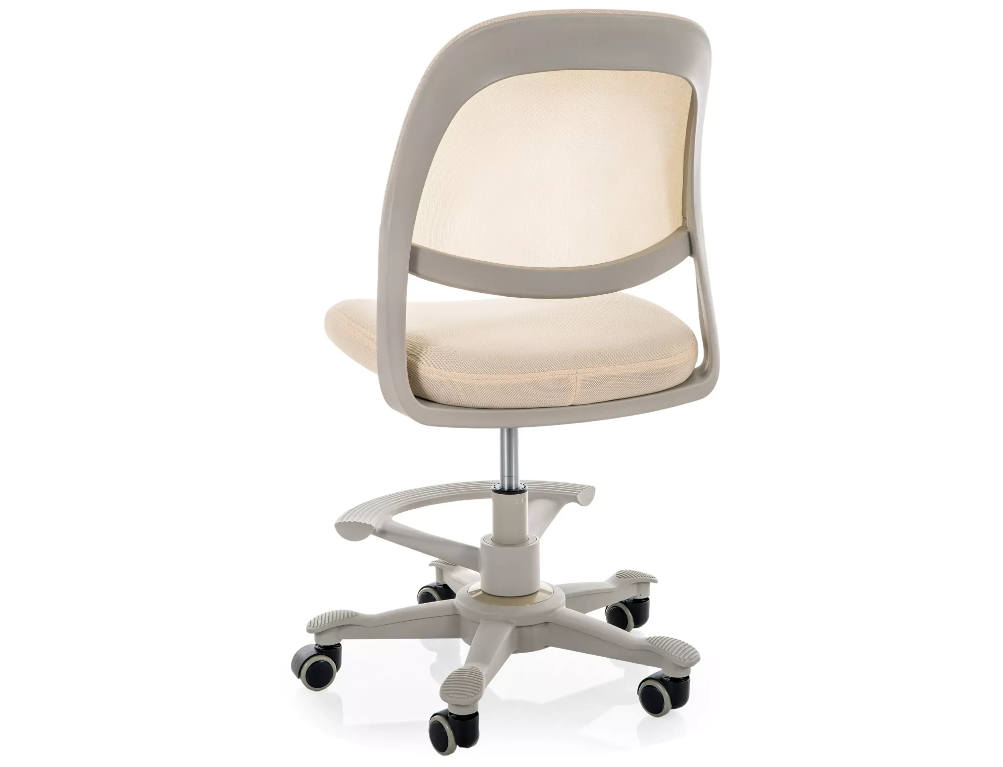 Fotel obrotowy, siatka / tkanina membranowa, kolor: beż, obrotowy podnóżek z regulacją wysokości.