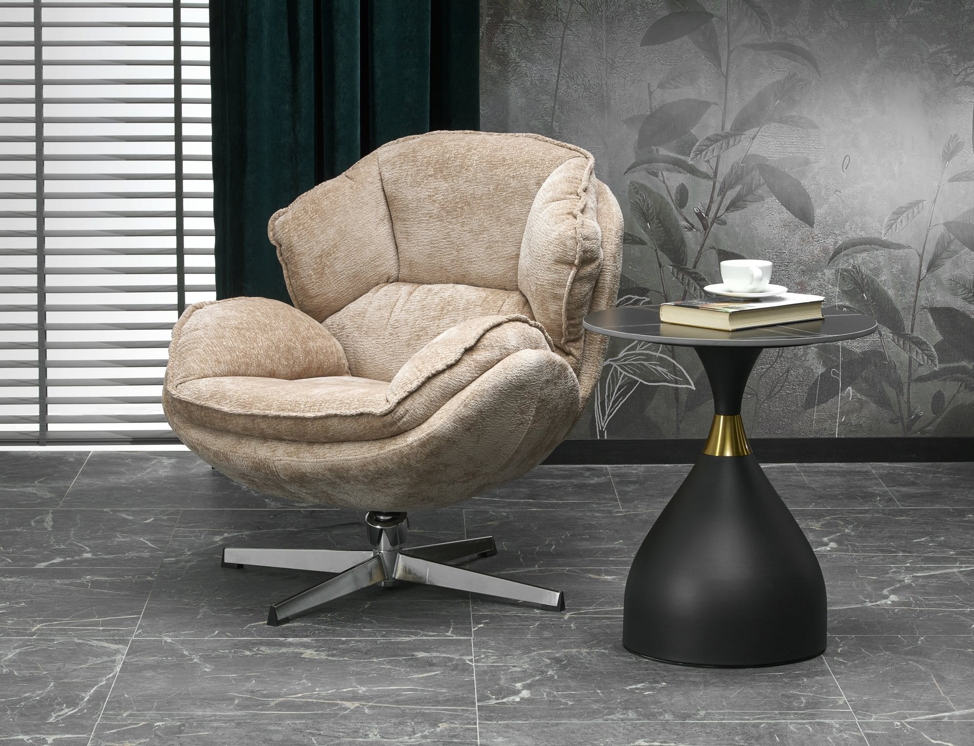 wymiary: 80/84/81/40 cm; materiał: tkanina / stal chromowana, kolor beżowy