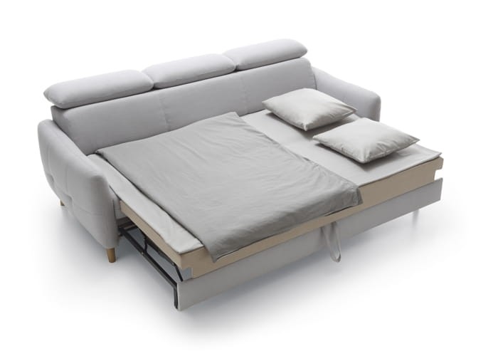 Nowoczesna rozkładana do spania sofa HUGO stanowi idealne wyposażenie niewielkich mieszkań. Zastosowanie pianek wysokoelastycznych zapewnia wygodny komfort. Gdy oczekujesz gości możesz z łatwością zmienić ją w praktyczne łóżko. Ruchome zagłówki sprawiają, że Hugo staje się jeszcze bardziej wygodne i dopasowane do twoich potrzeb.
