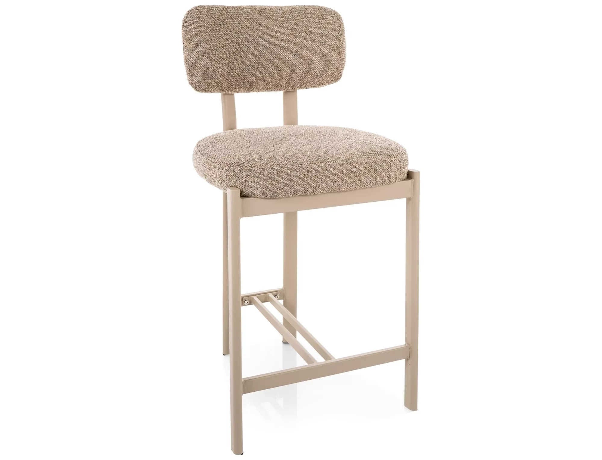 Smukła konstrukcja sprawia, że hoker wygląda bardzo lekko i nie przytłacza przestrzeni przy wyspie kuchennej. Charakterystycznym elementem modelu jest układ tylnej części stelaża – dwie tylne nogi ustawione są blisko siebie, co nadaje meblowi nowoczesny i ciekawy wygląd.