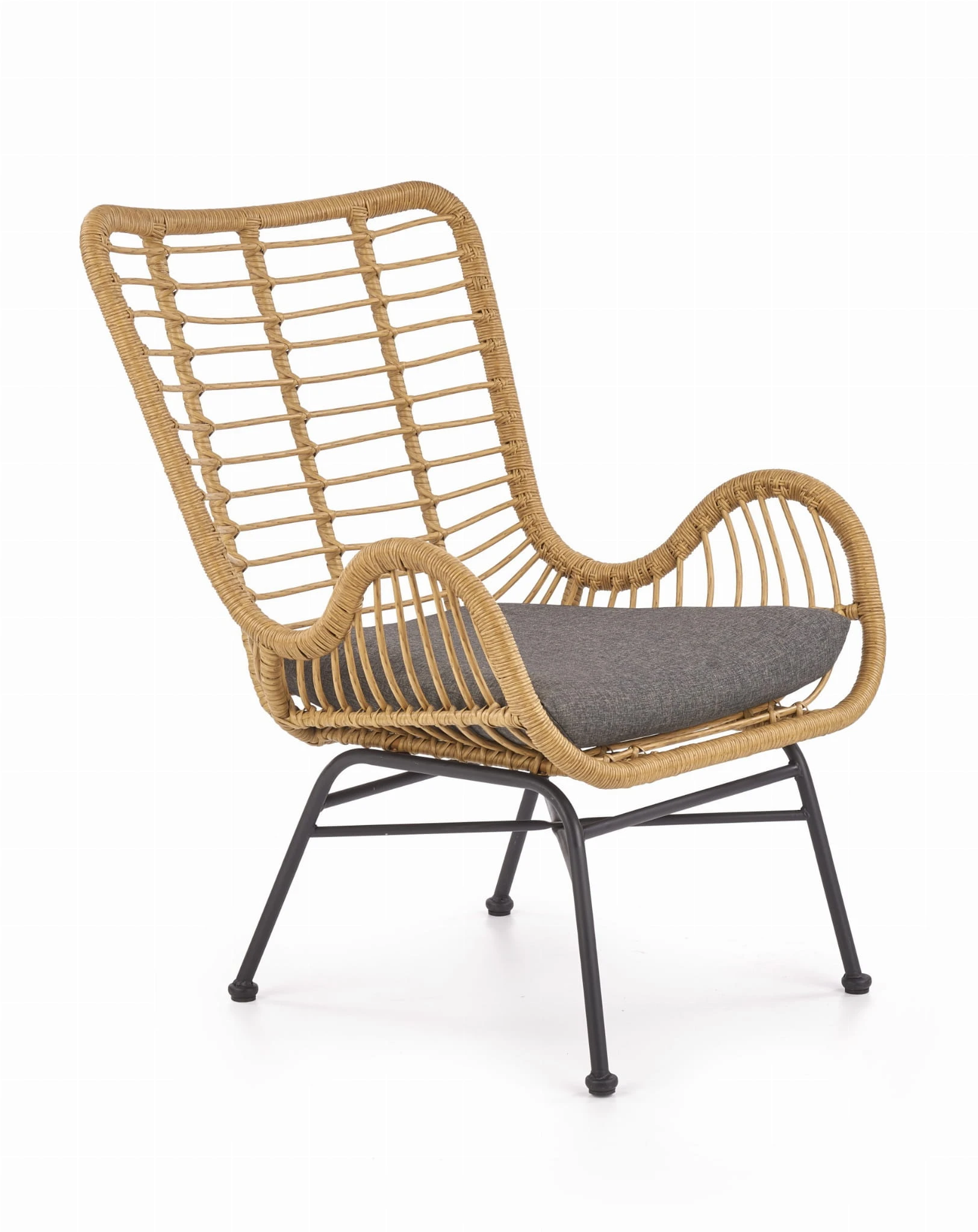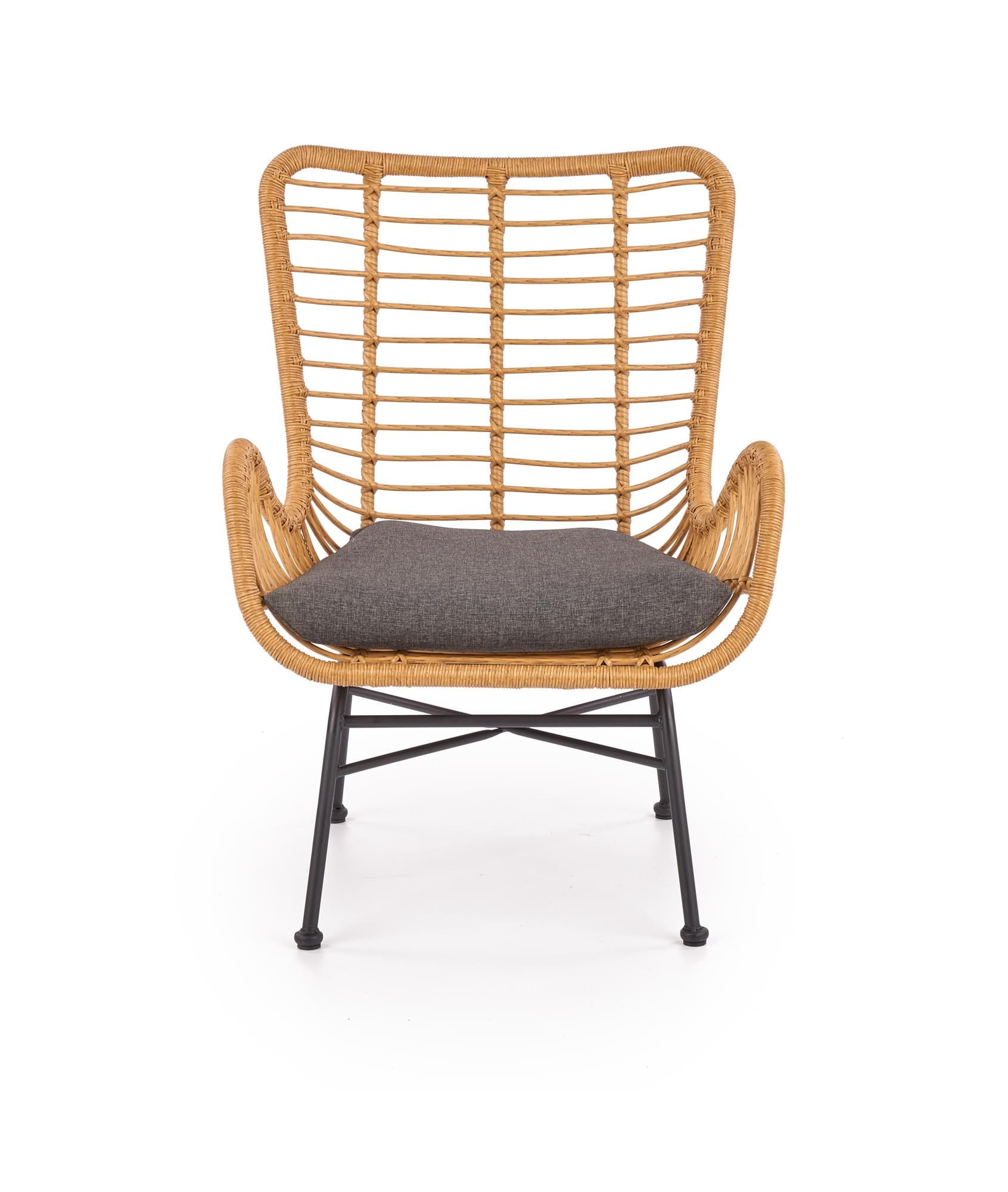 wymiary: 69/58/93/42 cm, materiał: rattan syntetyczny / stal malowana proszkowo / tkanina, kolor: naturalny - popielaty