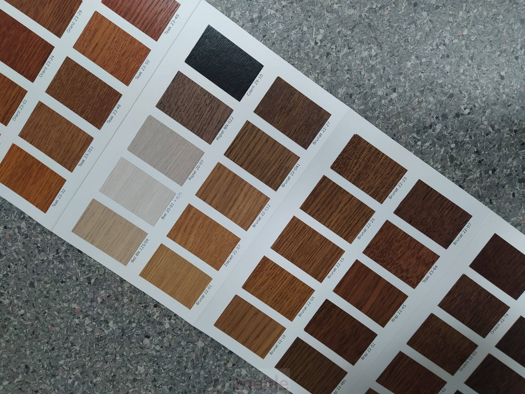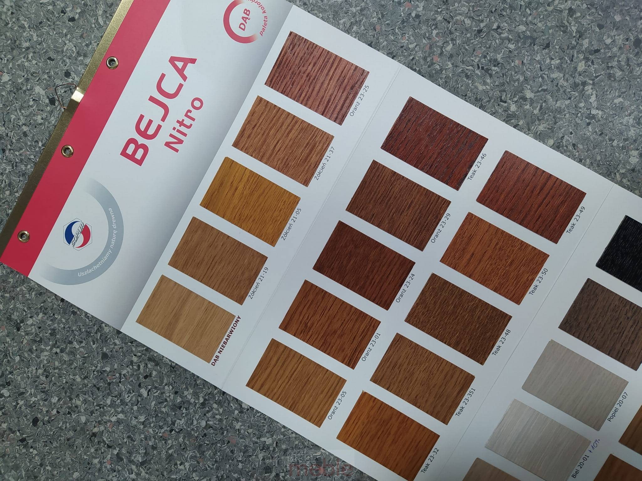 Dostępne wybarwienia drewna (paleta bejce nitro Sopur):