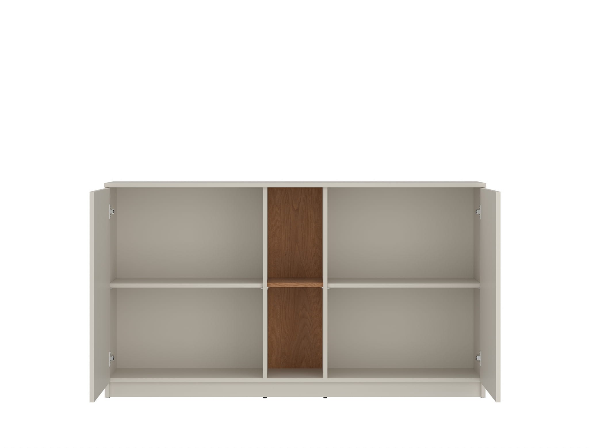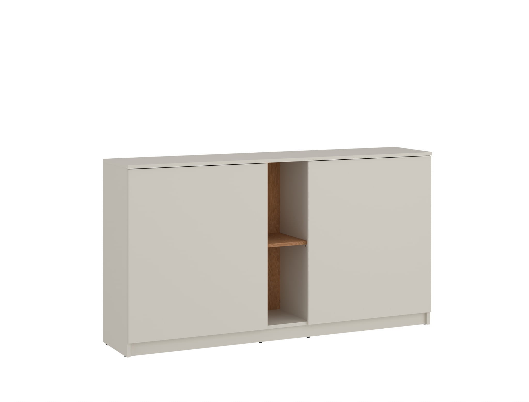 Efektowna komoda dwudrzwiowa FANO powstała z płyty wiórowej laminowanej. Stylowe połączenie kolorystyki frontów i korpusu w odcieniach Cashmere i Dąb Karmel doskonale uzupełnia nowoczesny design bezuchwytowego systemu. Mebel posiada ciekawy design, pozwalający na zastosowanie w wielu stylach home&decor.