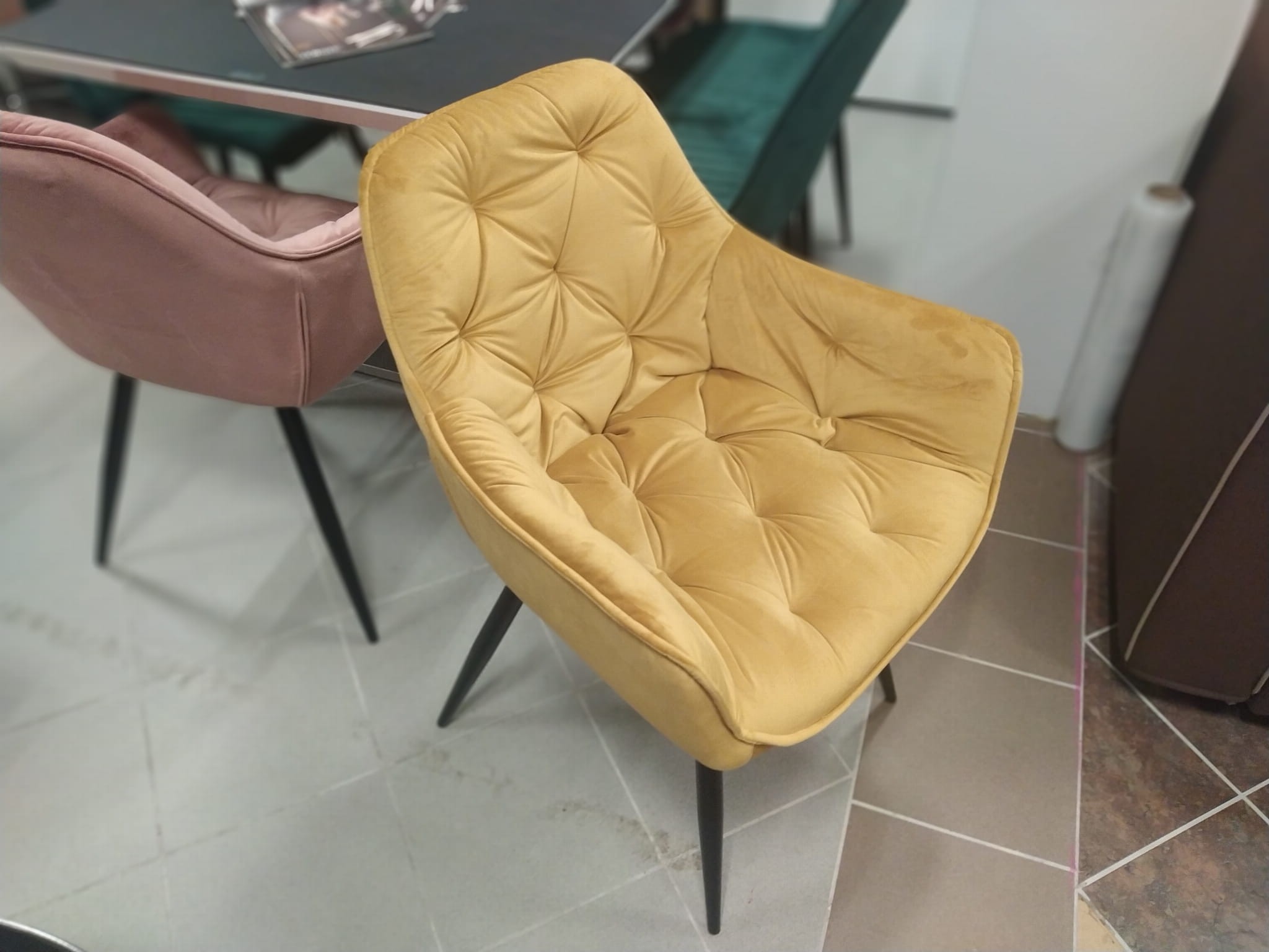 KRZESŁO CHERRY VELVET CZARNY STELAŻ/CURRY BLUVEL 68