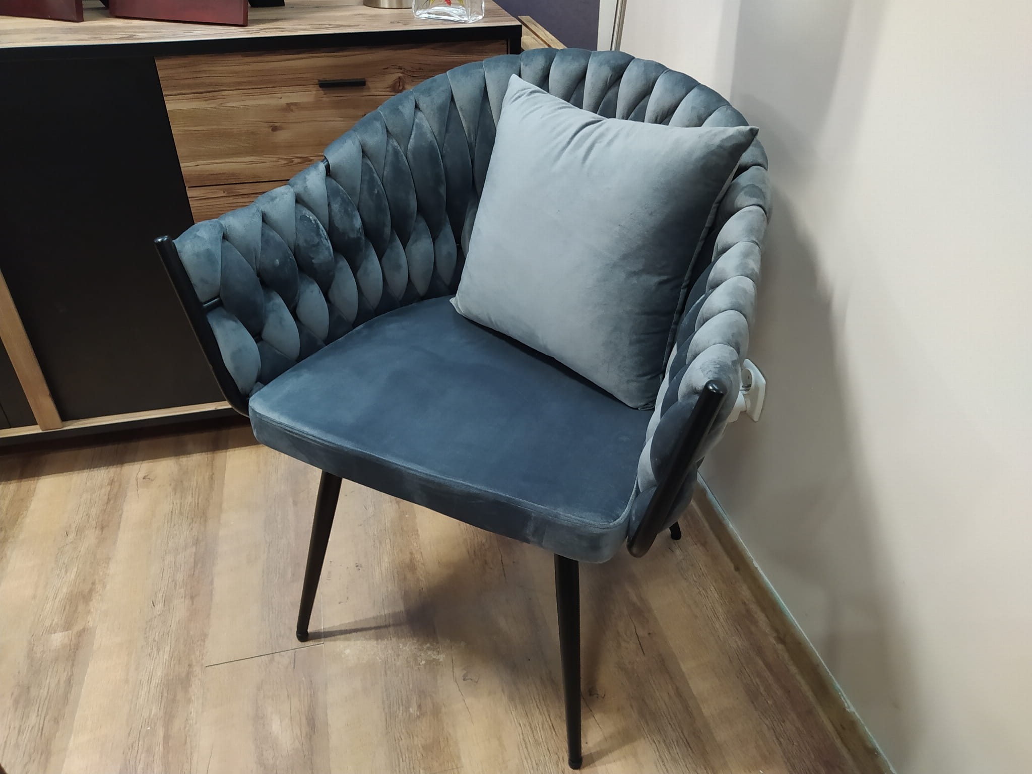 Model Nuvo firmy Signal to designerski mebel który może pełnić rolę krzesła lub niewielkiego fotela. Ciekawa bryła tego krzesła sprawia, że stanie się ono ozdobą każdego wnętrza w jakim go wykorzystamy. Duże, wygodne siedzisko oraz dodatkowa poduszka oparciowa zapewniają komfort podczas użytkowania. Zastosowana tkanina typu velvet jest bardzo przyjemna w dotyku i świetnie sprawdza się w codziennym użytkowaniu. Czarne metalowe nogi są nie tylko wytrzymałe ale stanowią również dodatkowy walor estetyczny.
