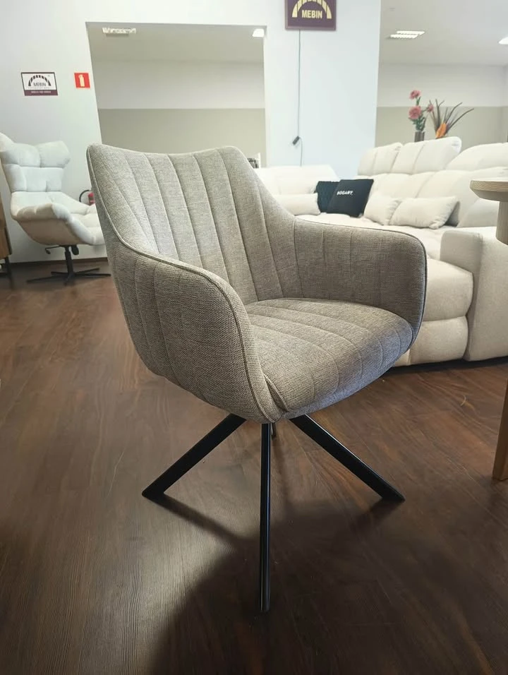 AZALIA w tkaninie Brego to świetne rozwiązanie, jeśli szukasz krzesła, które jest jednocześnie wygodne, eleganckie i bardzo wytrzymałe. Kubełkowa konstrukcja daje odczucie siedzenia w małym fotelu, a funkcja obrotu 180° z autopowrotem sprawia, że korzystanie z niego jest wyjątkowo wygodne — krzesło samo wraca do pozycji wyjściowej i zawsze wygląda idealnie przy stole.