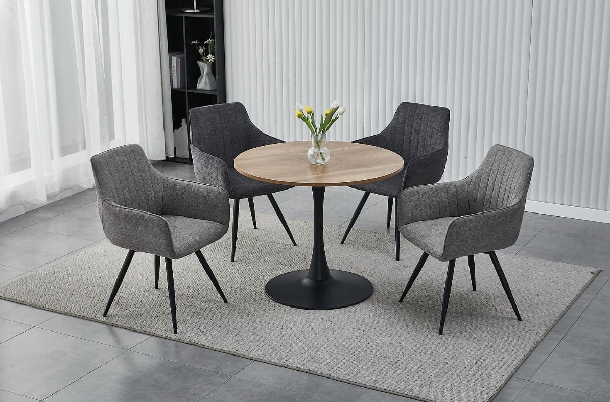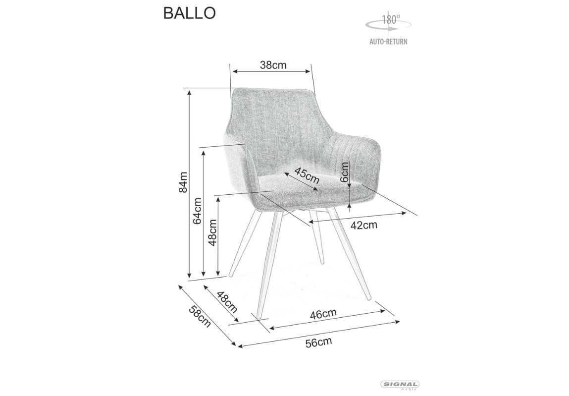 Krzesło Ballo łączy to co wygodne krzesło powinno posiadać: jest wygodne, wytrzymałe i dobrze wygląda. Niewątpliwą zaletą tego modelu jest obrotowy mechanizm z auto powrotem do pozycji wyjściowej. Zapewnia to dużą funkcjonalność i pewność, że krzesła zawsze dobrze będą wyglądały przy stole. Wysokie podłokietniki oraz miękkie siedzisko zapewnia wysoki komfort podczas użytkowania. Czarny metalowy stelaż zapewnia solidną i stabilną podstawę.