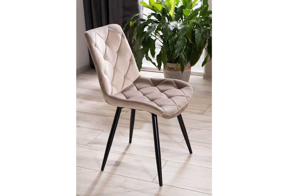 Krzesło tapicerowane Ralph idealnie wkomponuje się w każde nowoczesne a zarazem eleganckie wnętrze. Delikatne pikowania nadają mu niepowtarzalnego szyku i sprawiają, że może ono stać się ozdobą każdej jadalni lub salonu. Ralph to gustowne krzesło które wykonane zostało z wysokiej jakości materiałów. Wypełnienie z miękkiej pianki oraz dobrze wyprofilowane oparcie zapewnia komfort. Wytrzymała, bardzo przyjemna w dotyku a jednocześnie świetnie sprawdzające się codziennym użytkowaniu tkanina bluvel jest gwarancją spokojnego użytkowania przez długi czas. Czarne metalowe nogi stanowią stabilne i bezpieczne podparcie.