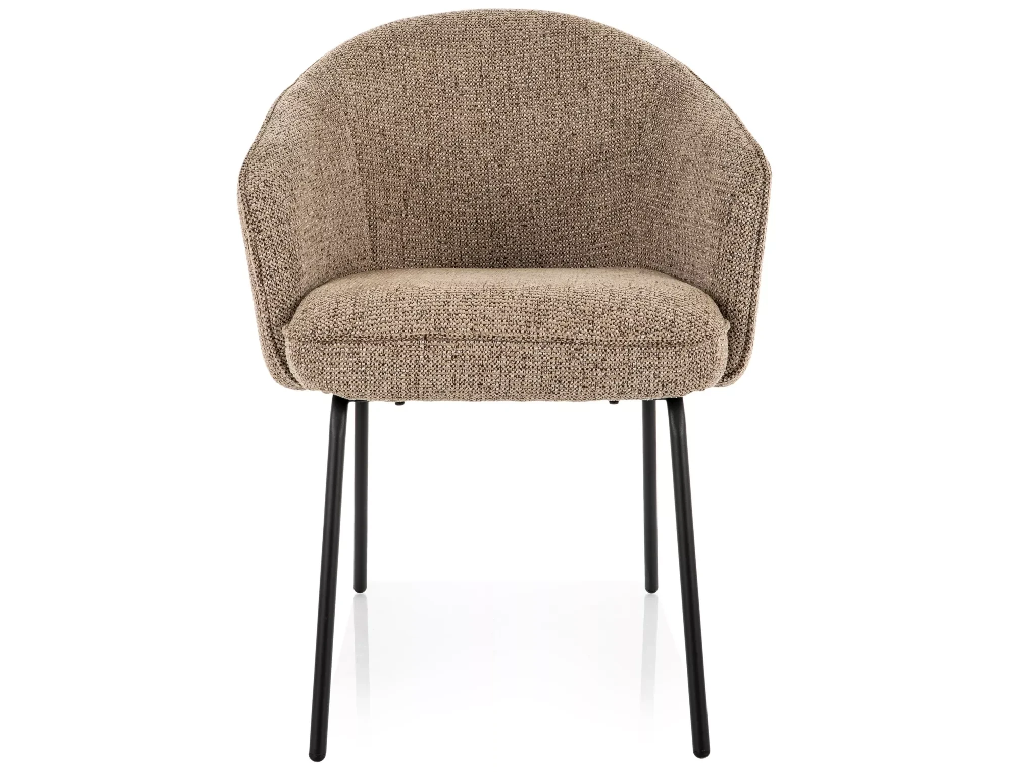 Krzesło, tapicerka: tkanina Noelle, stelaż: metal, kolor: ciemny beż 33 / czarny mat. Siedzisko wyposażone w sprężyny kieszeniowe.