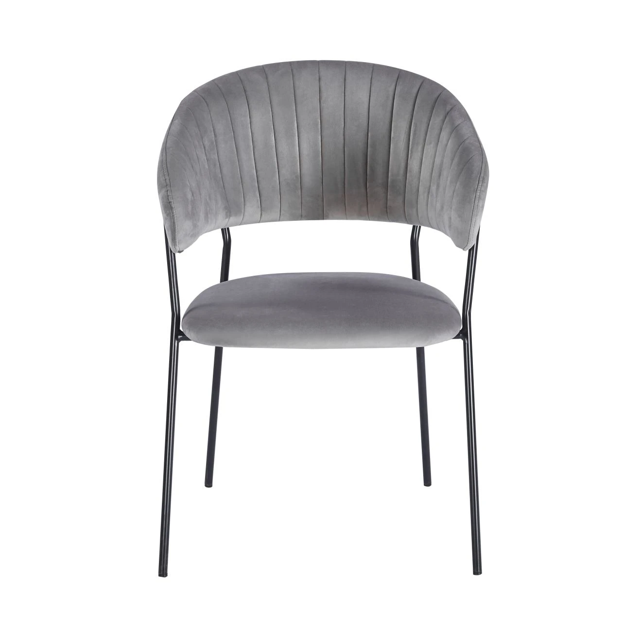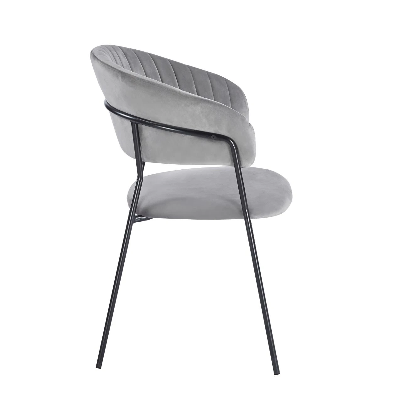 Miękka tapicerka velvet, zaokrąglone oparcie z dekoracyjnymi przeszyciami i wygodne podłokietniki sprawiają, że krzesło nie tylko dobrze wygląda, ale też zapewnia wysoki komfort siedzenia. Idealnie sprawdzi się jako krzesło do jadalni, krzesło tapicerowane do salonu czy stylowe krzesło z podłokietnikami do stołu.