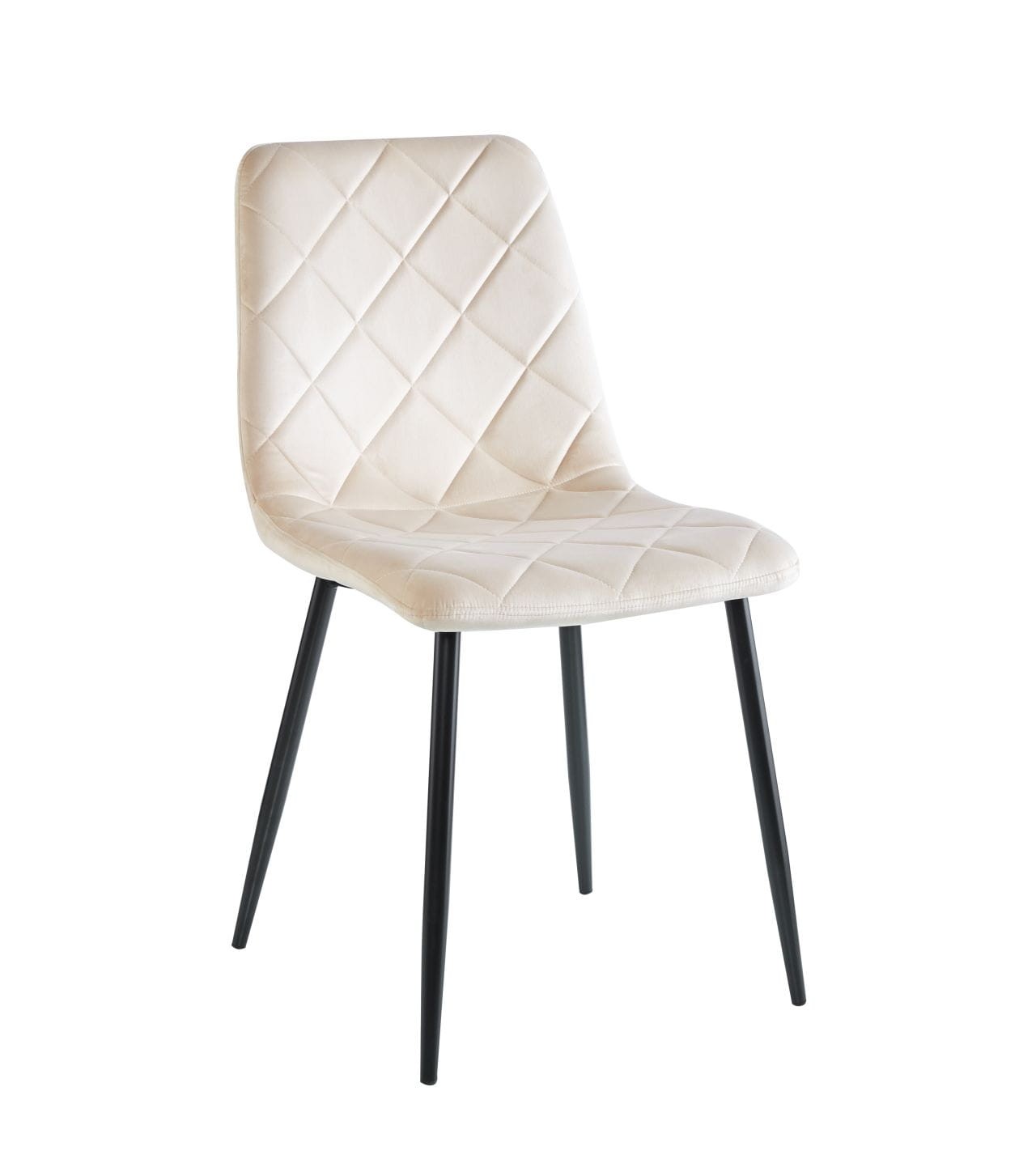 Model krzesła K6-FX firmy Furnitex stworzony został o osobach szukających wygodnego, ładnego krzesła które nie będzie zajmowało dużo przestrzeni. Zgrabne wymiary tego krzesła pozwalają zaaranżować go nawet w niewielkiej kuchni lub jadalni. Przeszycia na siedzisku i oparciu dodają temu krzesłu tapicerowanemu niepowtarzalny wygląd. Uszyte zostało w bardzo sprawdzonej i świetnej w codziennym użytkowaniu tkaninie velvetowej. Jest ona również bardzo przyjemna w dotyku. Czarne metalowe nogi stanowią solidną i wytrzymałą podporę.