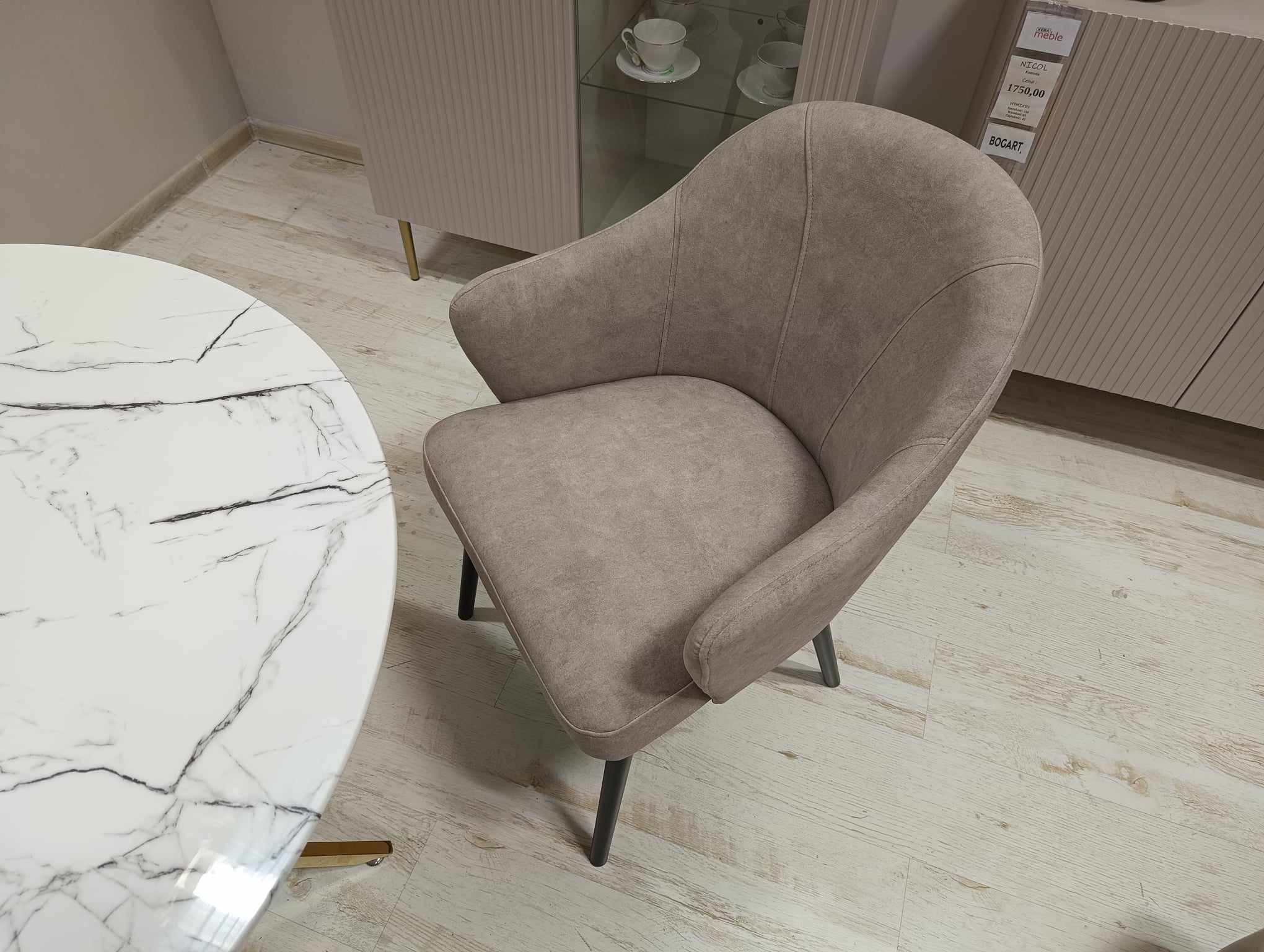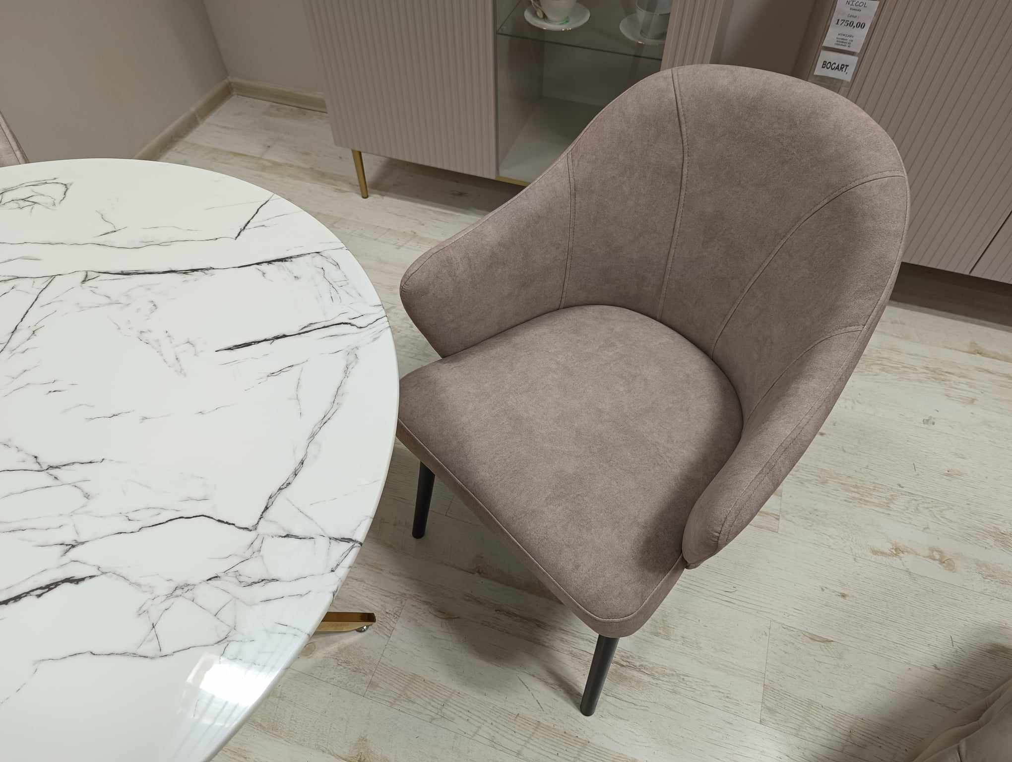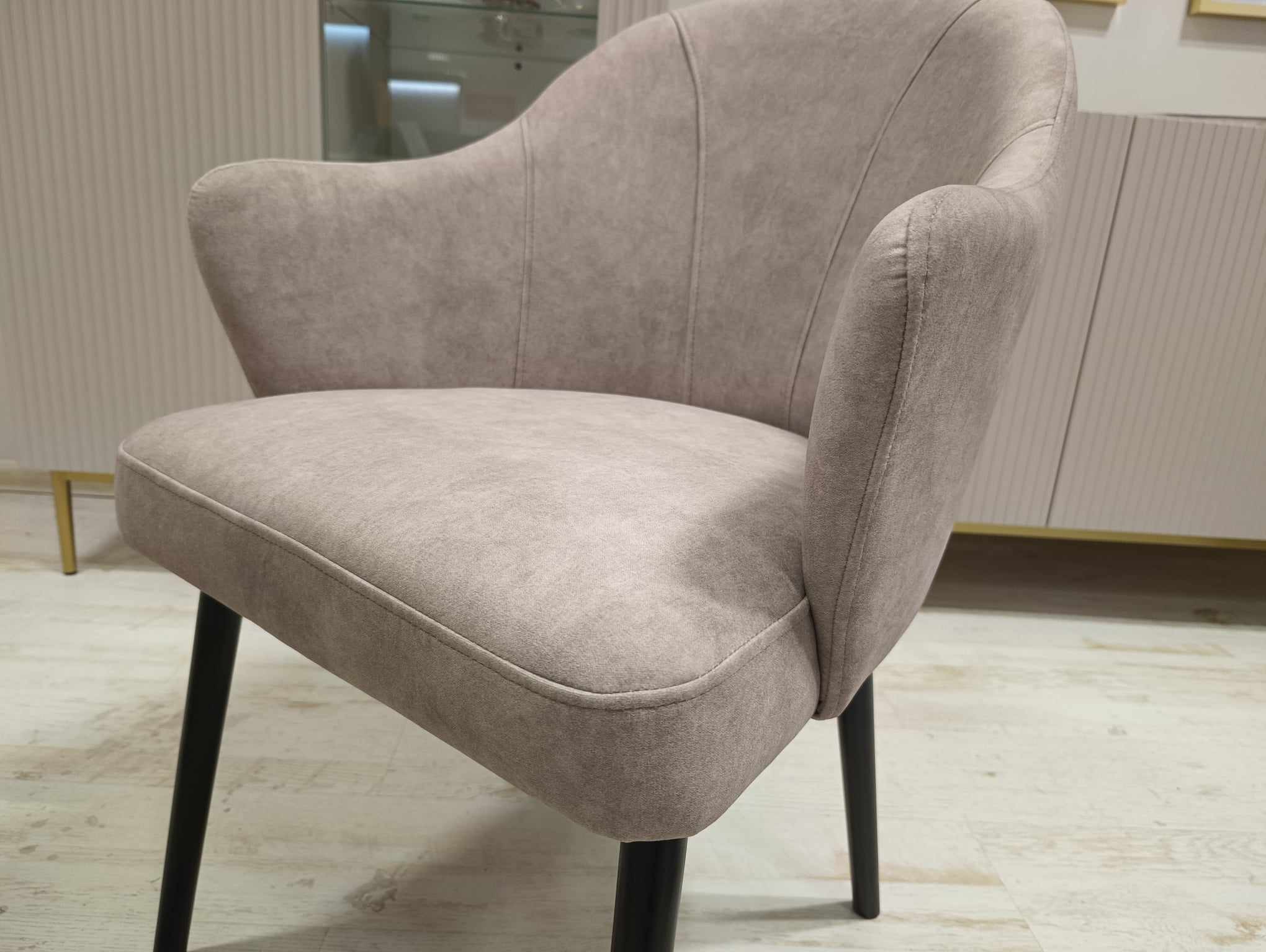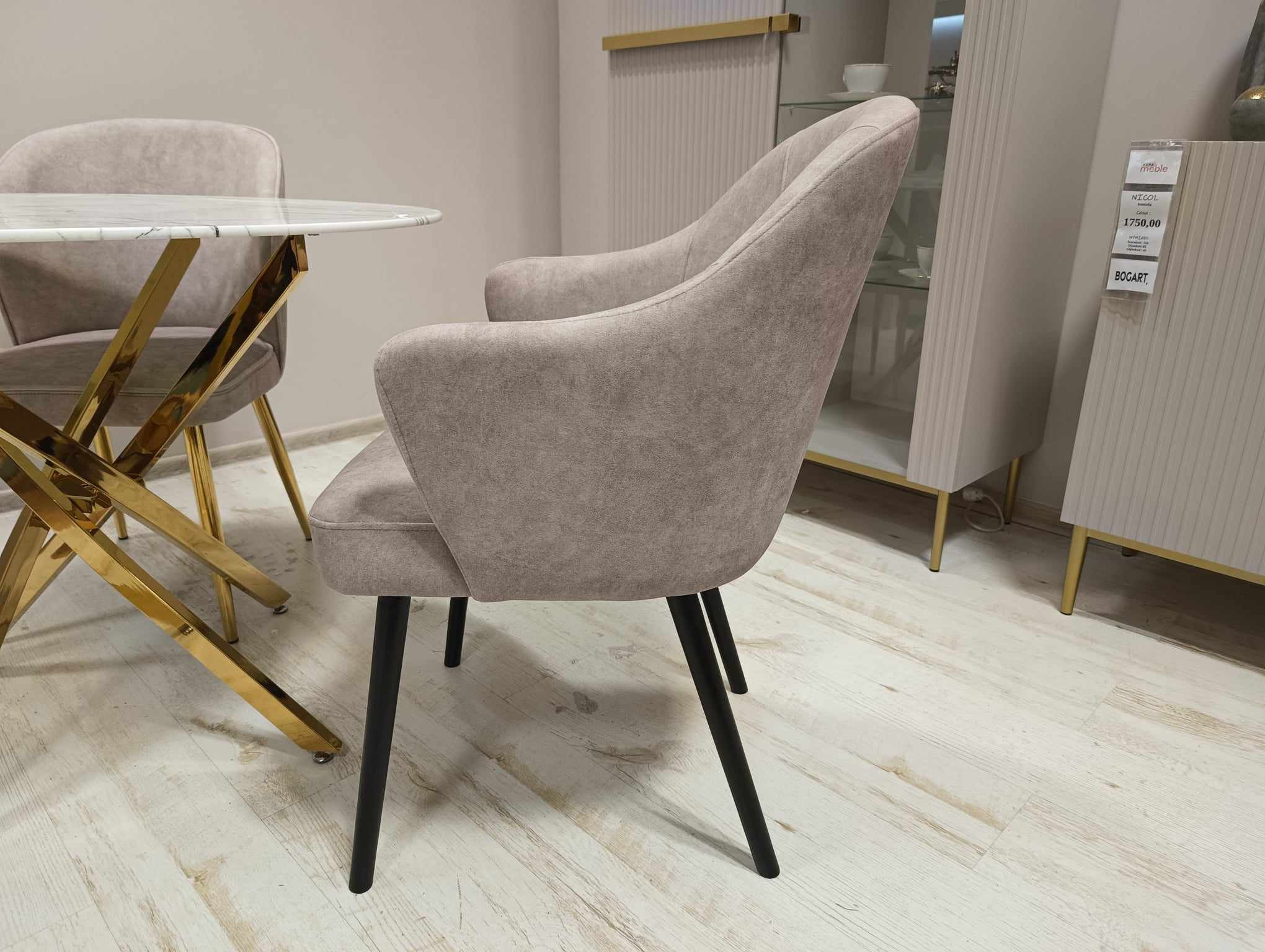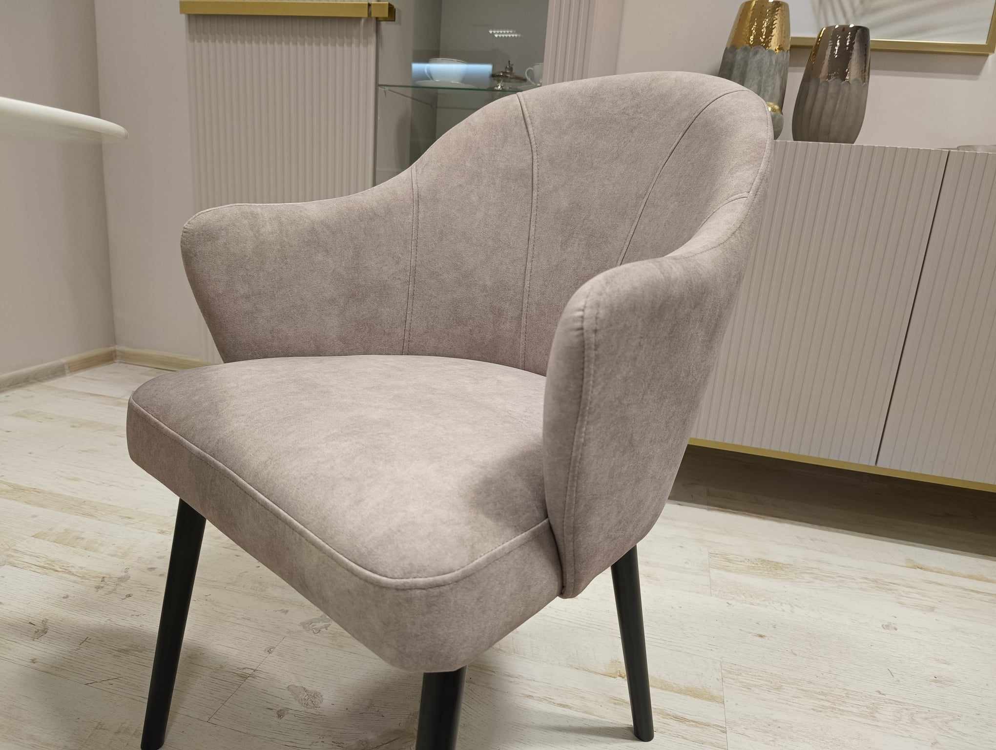 Nowoczesne krzesło tapicerowane LEA na drewnianej nodze.