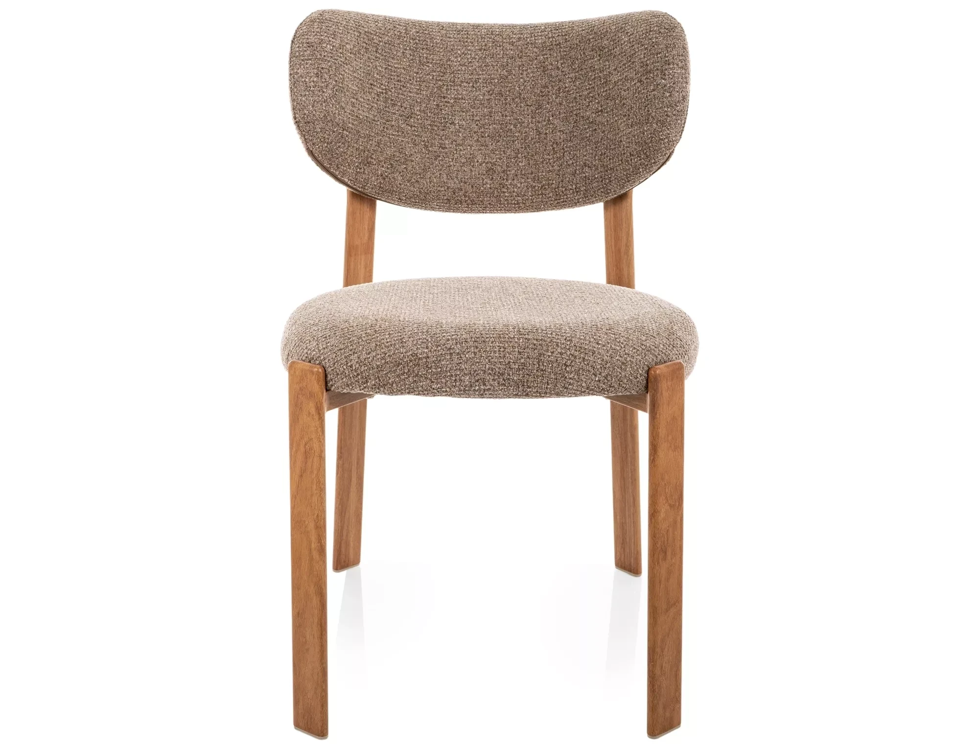 Krzesło Rin tapicerowane jest tkaniną plecioną, która dobrze sprawdza się w codziennym użytkowaniu. Materiał ma naturalną strukturę i dobrze komponuje się z drewnem oraz metalem.