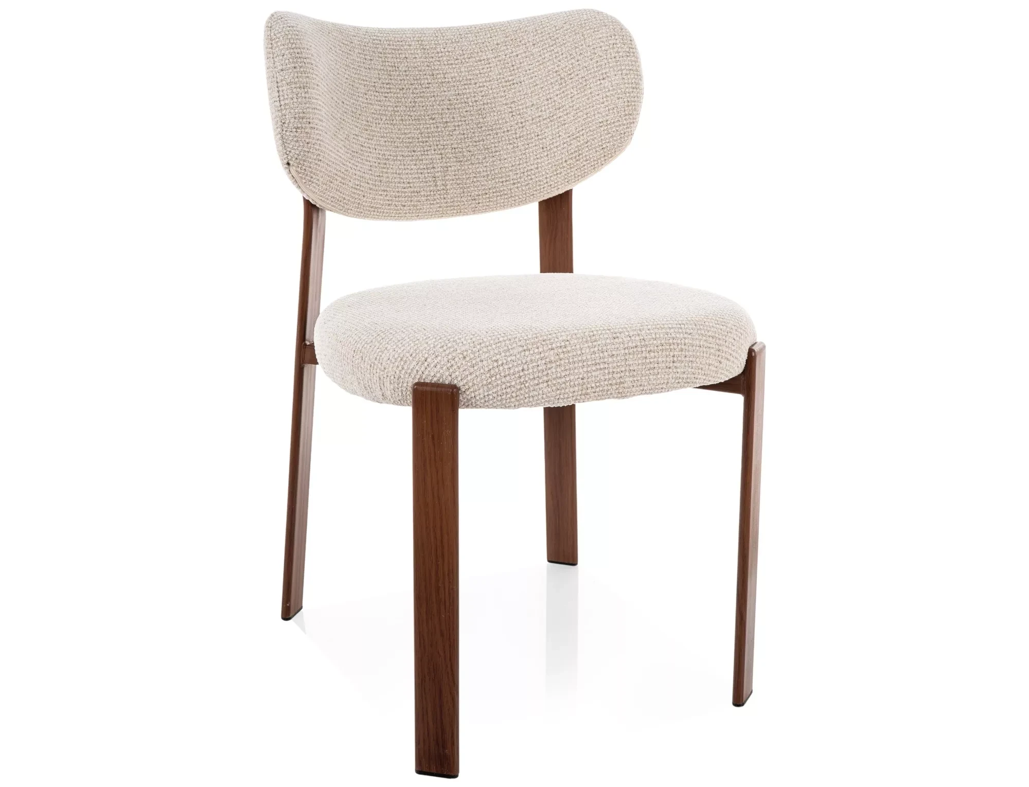 Model wyróżnia się delikatnie wyprofilowanym oparciem o miękkiej, zaokrąglonej linii, które dobrze podpiera plecy i zapewnia wygodę podczas codziennego użytkowania. Brak podłokietników sprawia, że krzesło jest bardzo praktyczne – łatwo wsunąć je pod stół, co docenisz szczególnie w mniejszych przestrzeniach.