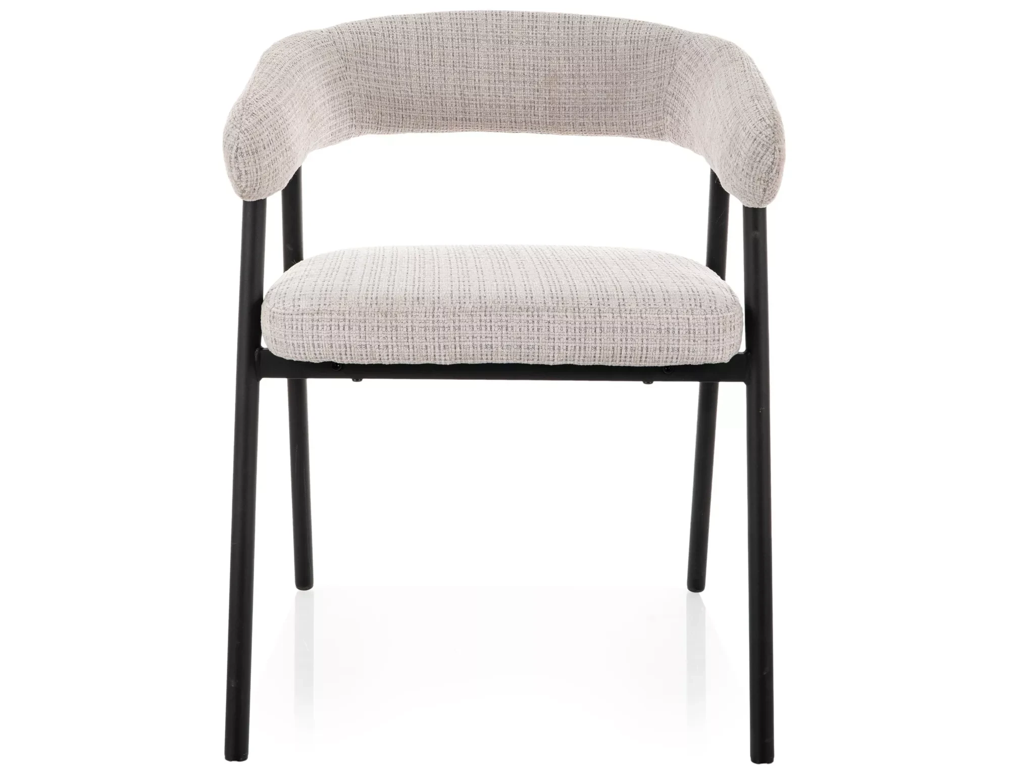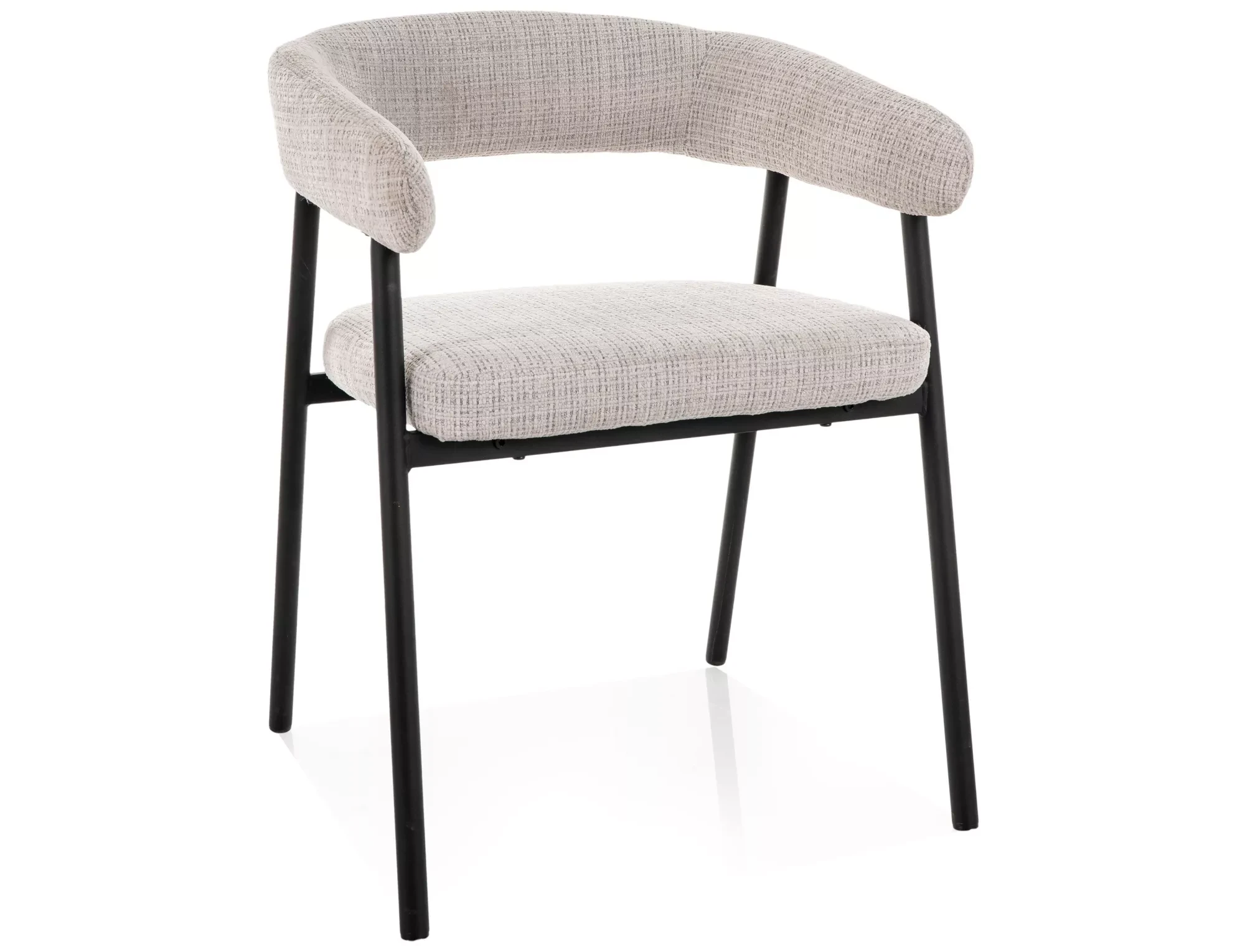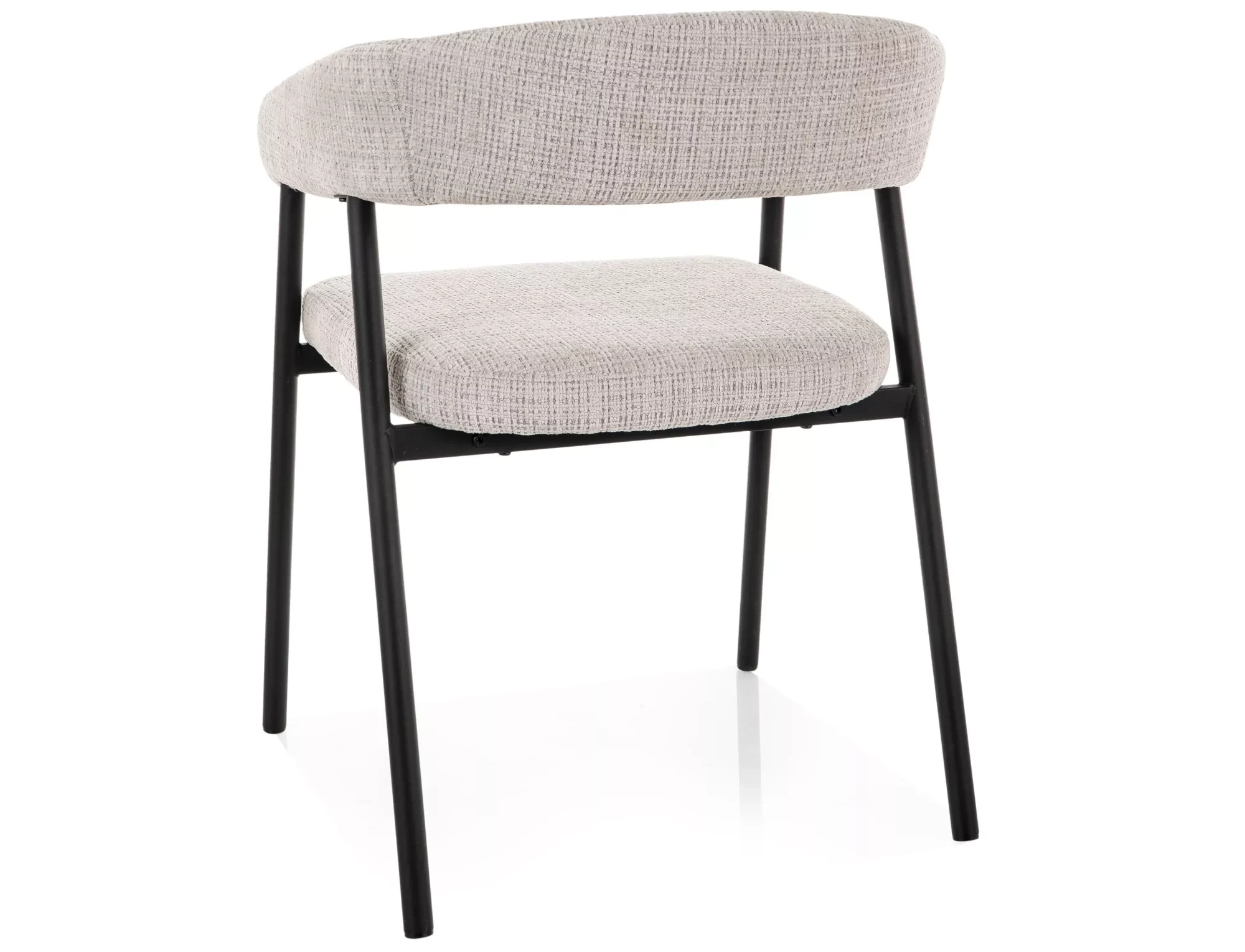 Zaokrąglona linia oparcia nadaje mu nowoczesnego charakteru, a smukły metalowy stelaż sprawia, że krzesło wygląda lekko i dobrze prezentuje się przy stole – nawet w mniejszych pomieszczeniach.