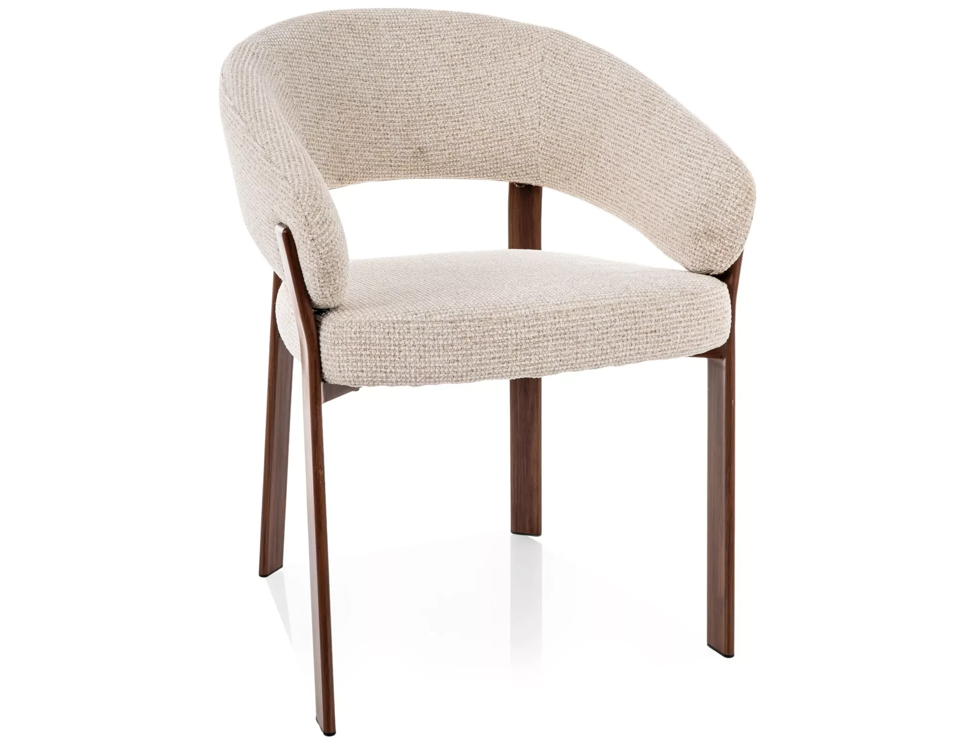 Krzesło Nagoja zostało obite tkaniną plecioną, która dobrze sprawdza się w codziennym użytkowaniu. Materiał ma wyraźną, naturalną strukturę, dzięki czemu idealnie pasuje do wnętrz inspirowanych naturą.