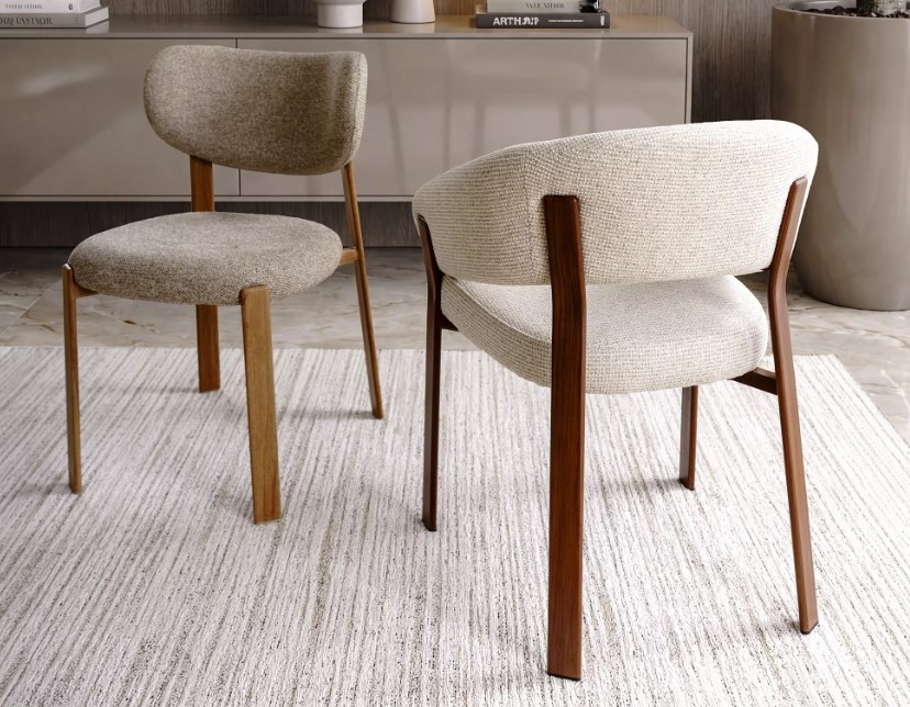 Krzesło Nagoja to nowoczesne krzesło tapicerowane z podłokietnikami, które świetnie odnajduje się w aranżacjach w stylu japandi, skandynawskim i nowoczesnym. Jego największym wyróżnikiem jest miękka, zaokrąglona forma oparcia, która płynnie przechodzi w podłokietniki, tworząc spójną i bardzo wygodną całość.