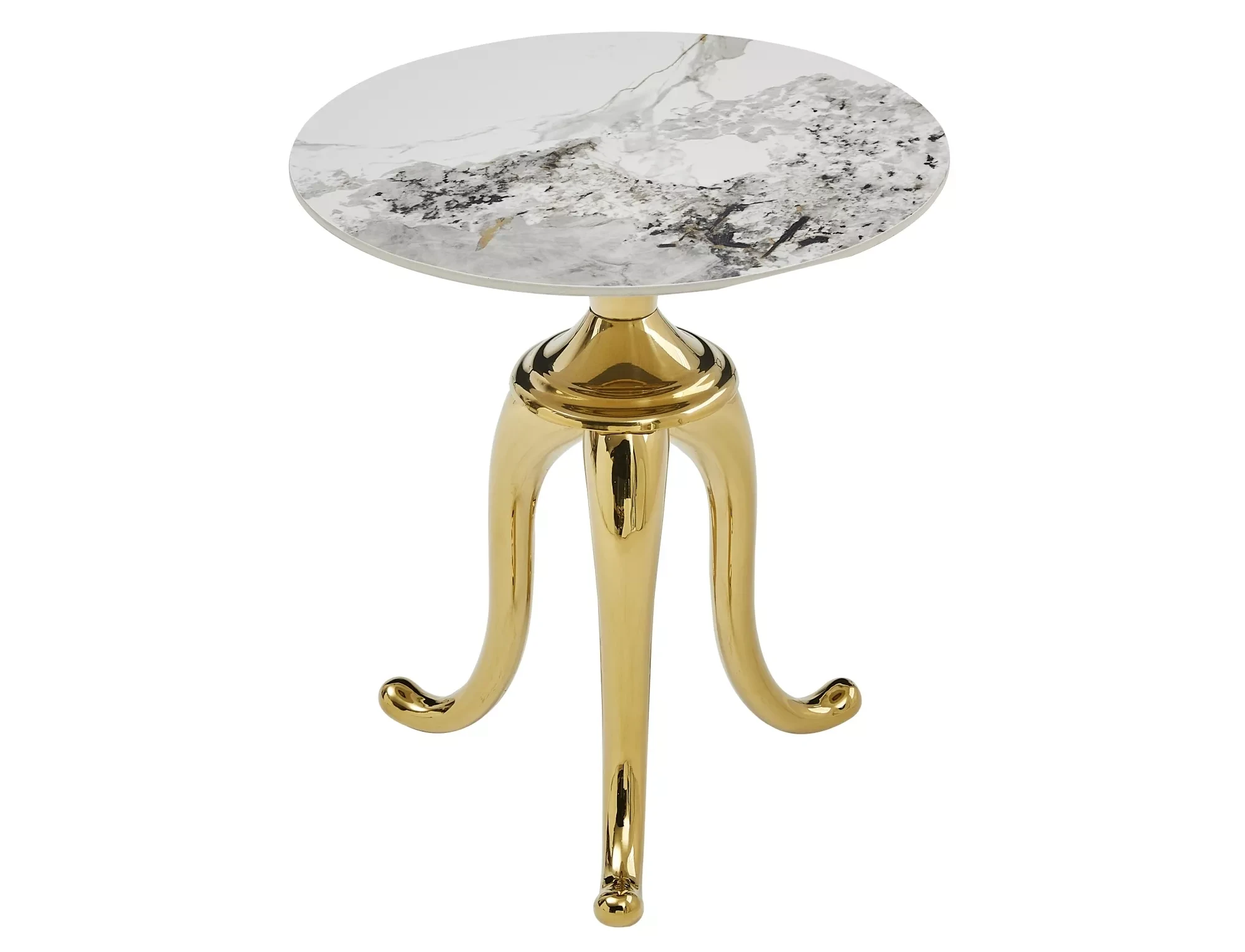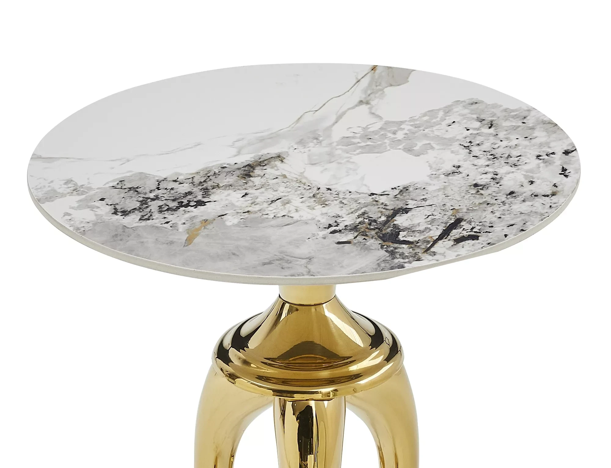 Ława, blat: , stelaż: stal nierdzewna, kolor: biały połysk, efekt marmuru / złoty.