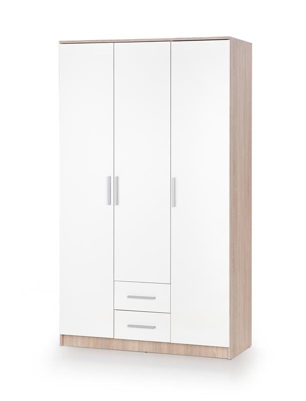 wymiary: 120/52/205 cm, materiał: płyta meblowa laminowana / wysoki połysk, obrzeża ABS, kolory: biały / dąb sonoma