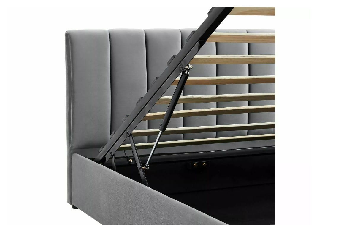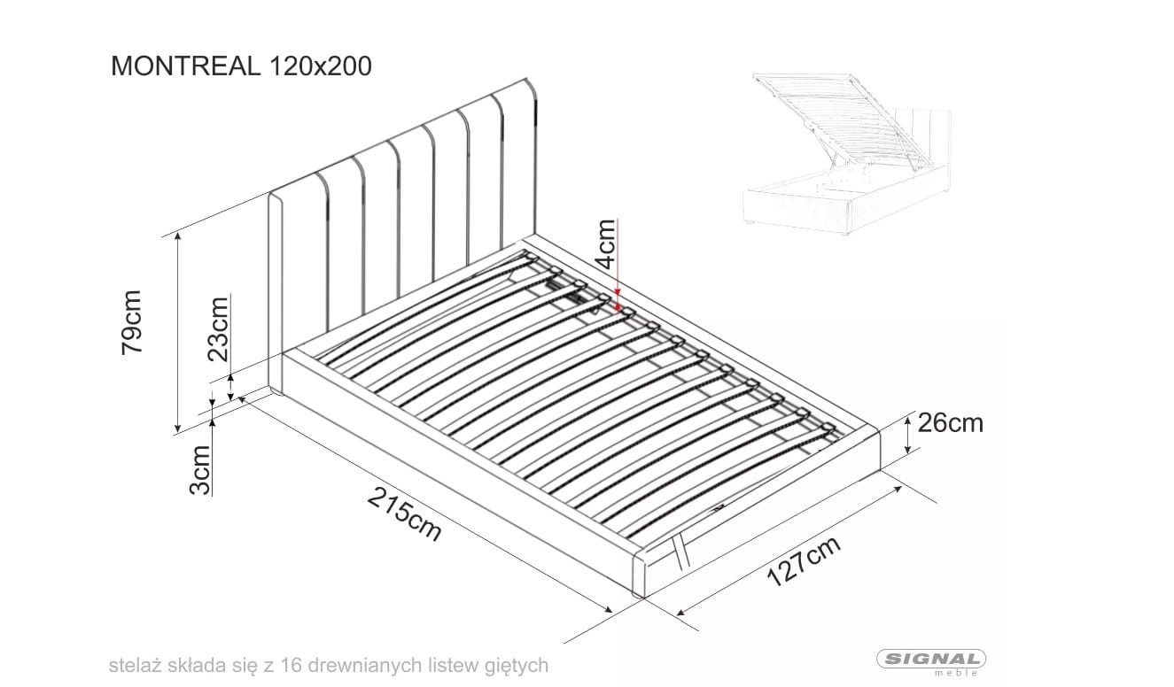 Dodatkowym atutem jest praktyczny pojemnik na pościel, który pozwala na optymalne wykorzystanie przestrzeni. Gazowe siłowniki umożliwiają łatwe podnoszenie i zamykanie pojemnika, co podnosi komfort użytkowania. Maksymalne obciążenie łóżka wynosi 120 kg.
