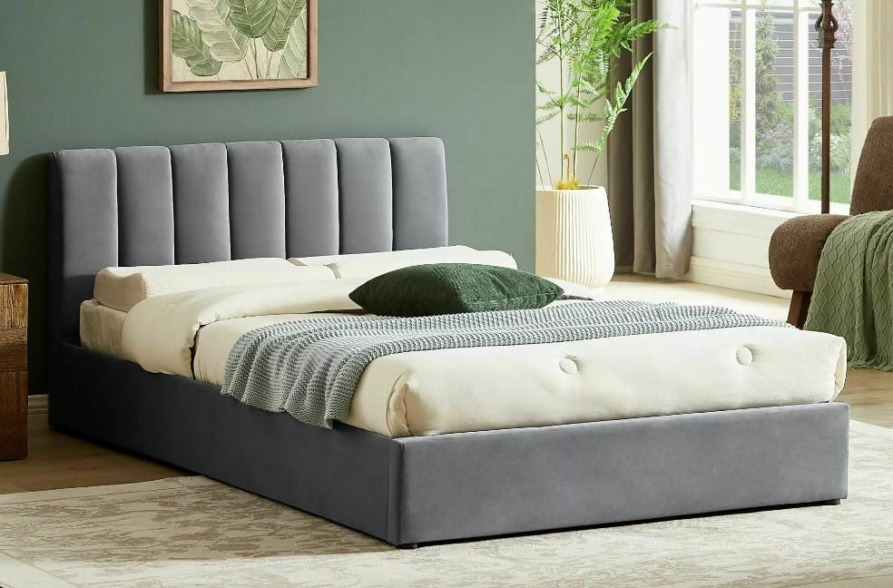 ŁÓŻKO TAPICEROWANE MONTREAL VELVET Z POJEMNIKIEM 120X200 KOLOR SZARY TAP. 192