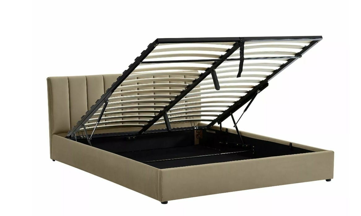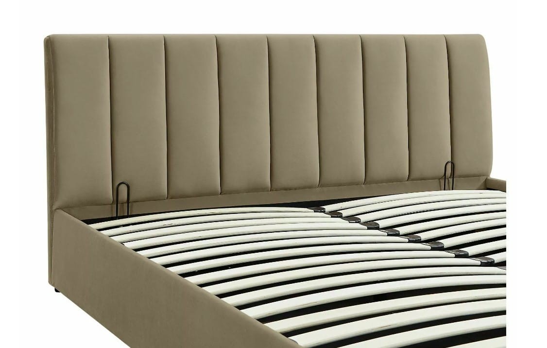 ŁÓŻKO TAPICEROWANE MONTREAL VELVET Z POJEMNIKIEM 140X200 KOLOR BEŻ BLUVEL 28