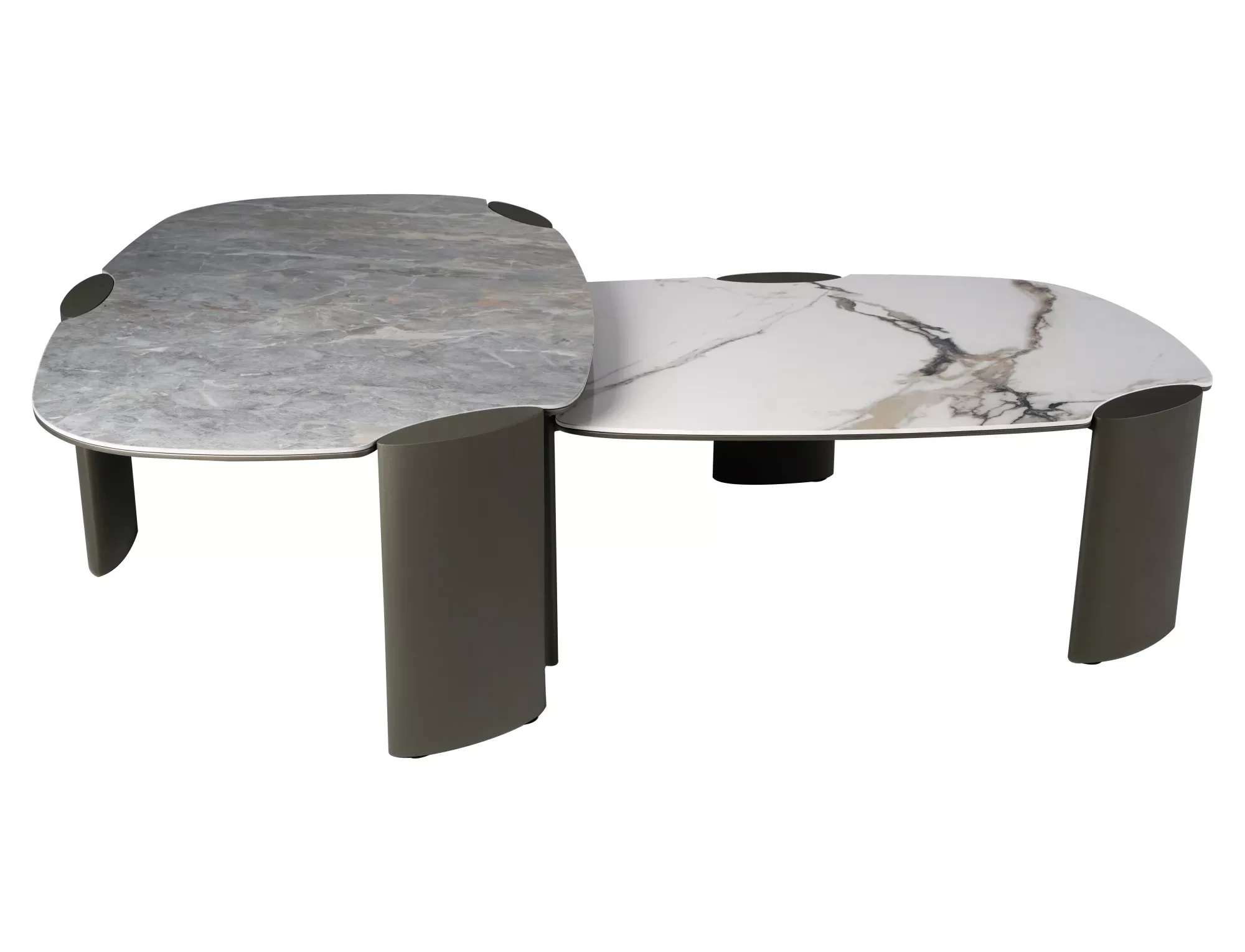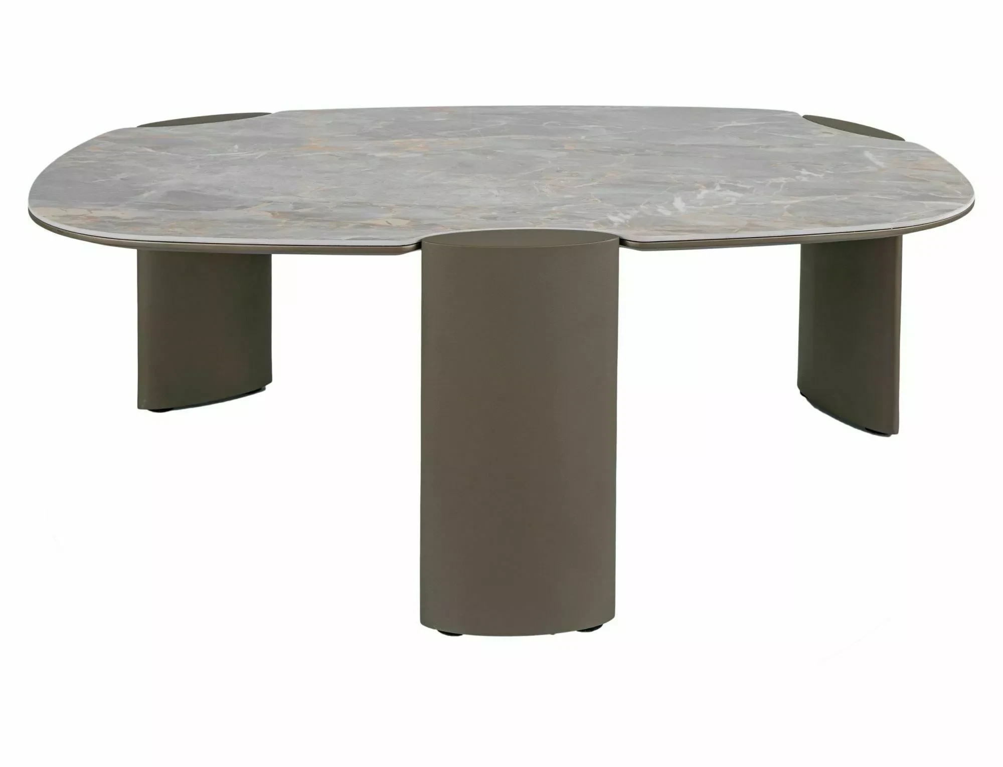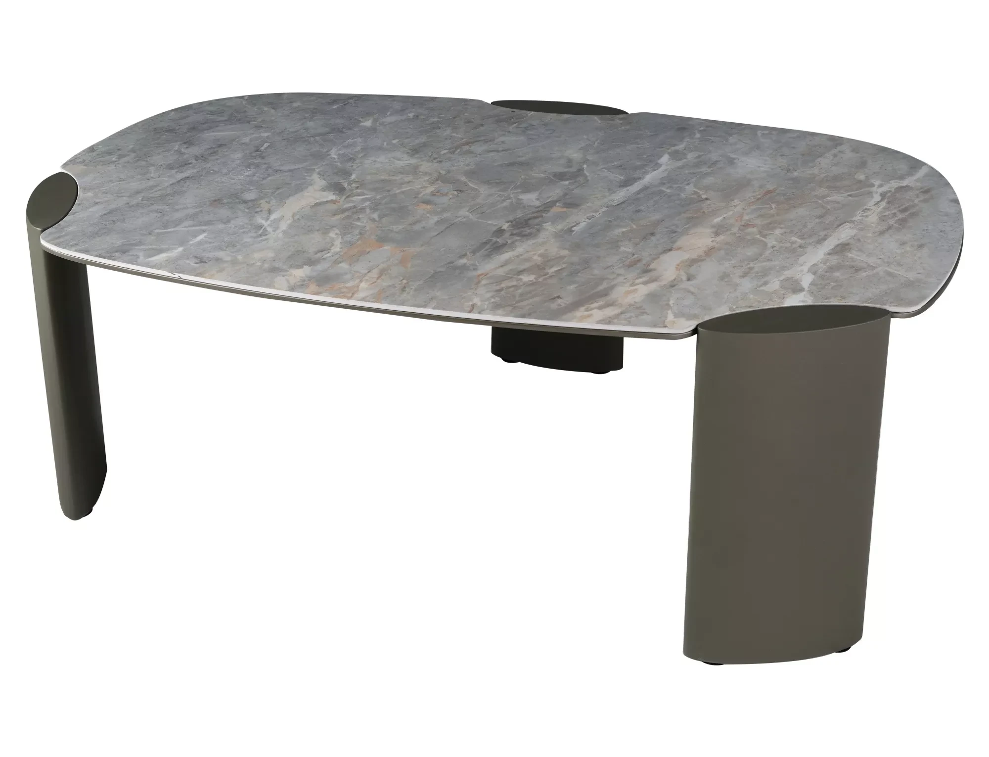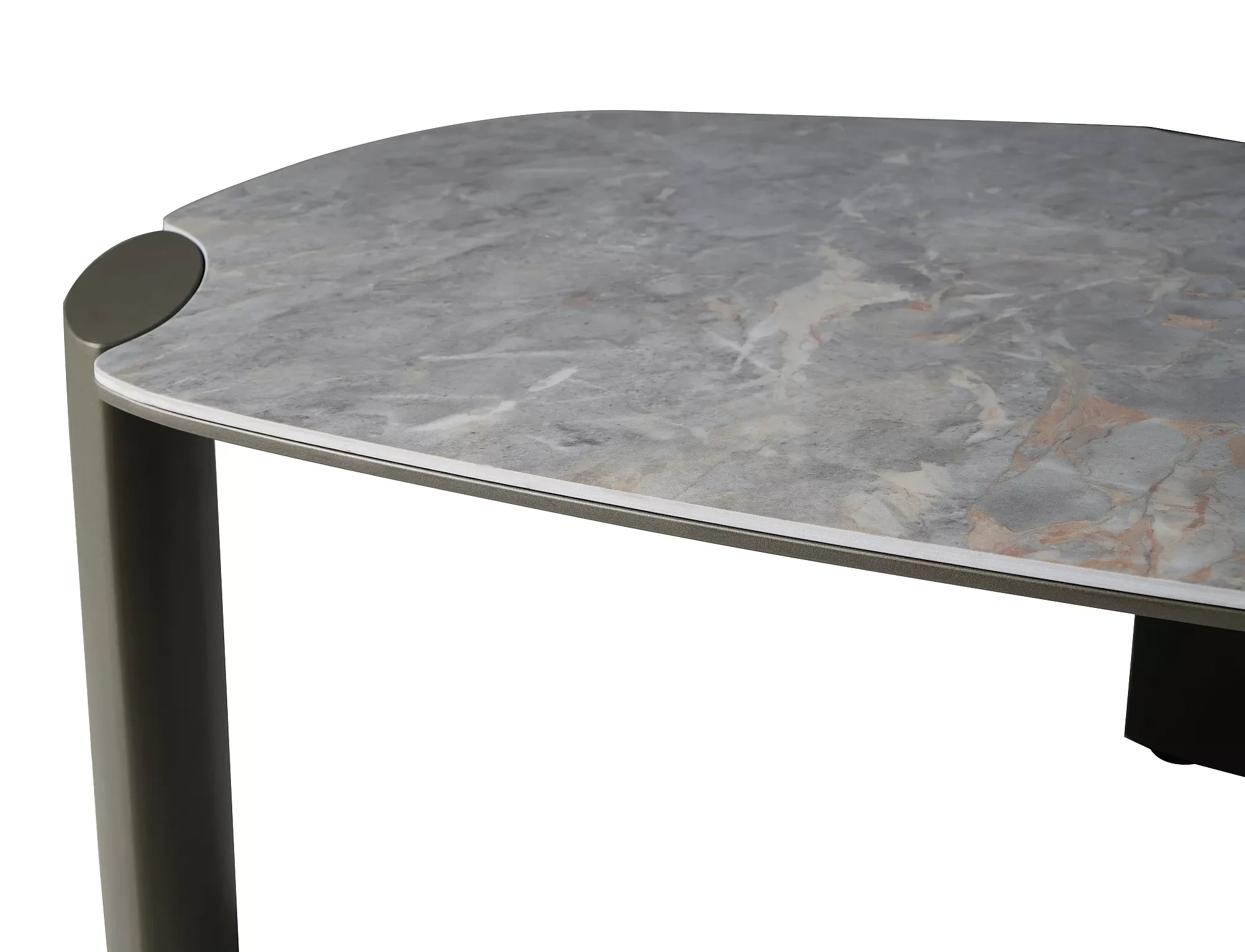 Ława, blat: MDF + hiszpańska ceramika Grigio, stelaż: metal, kolor: szary połysk / miedziany.
