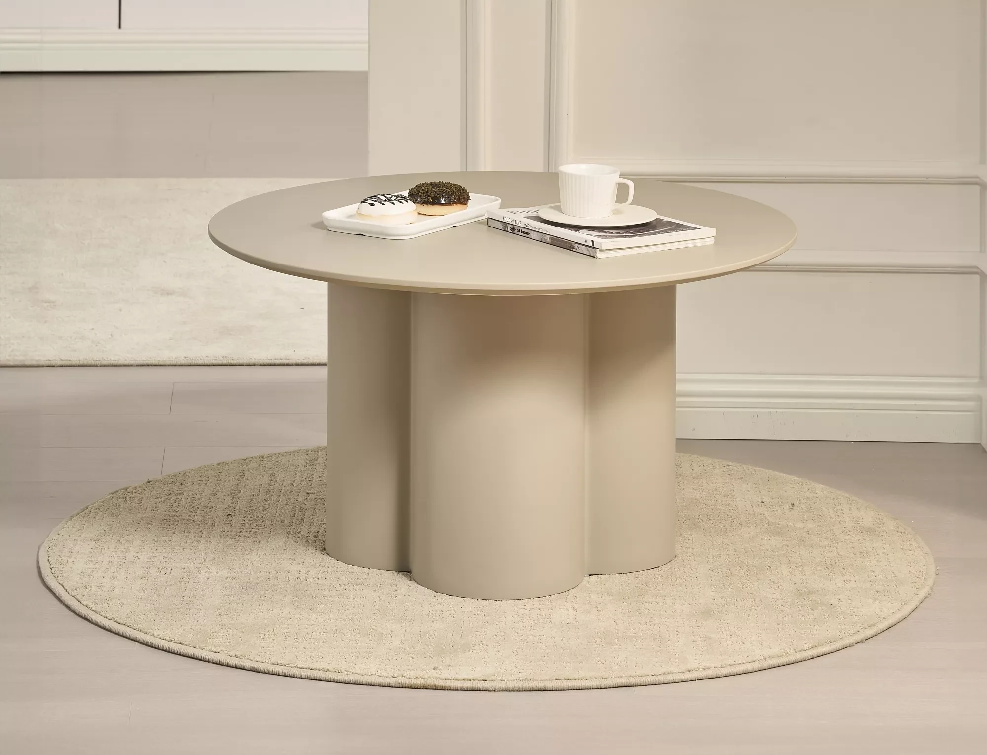 Ława, blat: MDF lakierowany, stelaż: MDF lakierowany, kolor: ciemny beż mat.