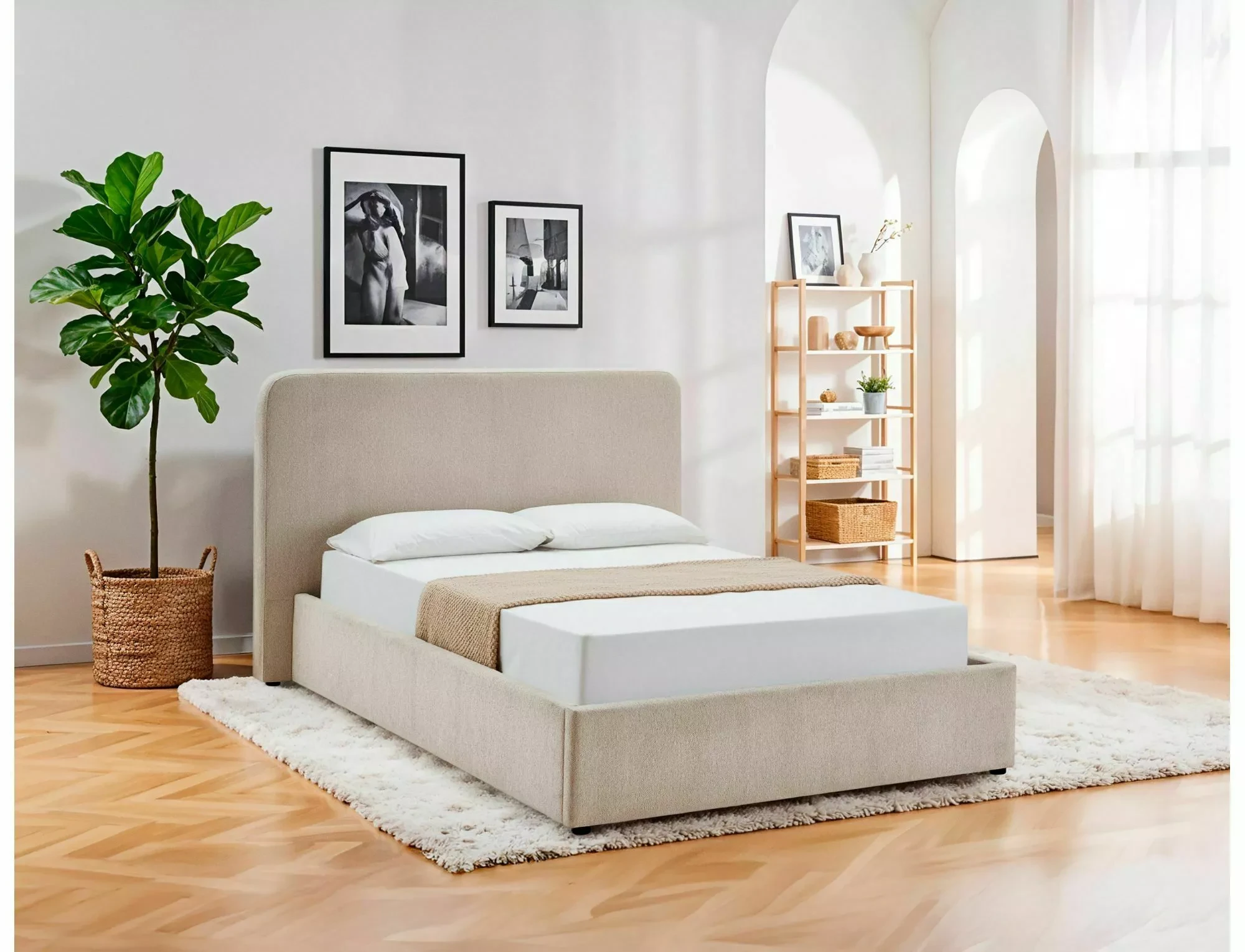 Łóżko 160 z pojemnikiem Lumia Raven 24 beż