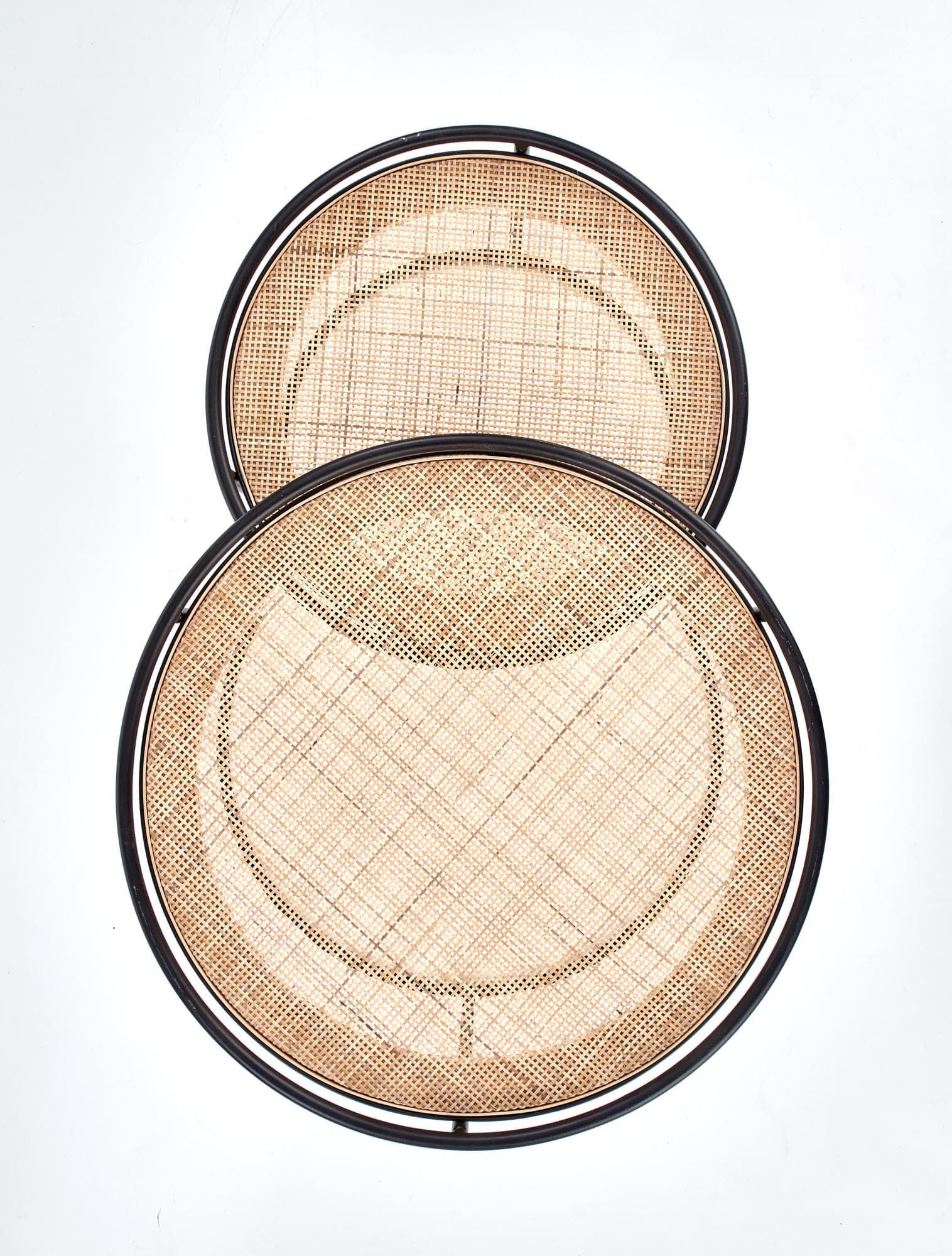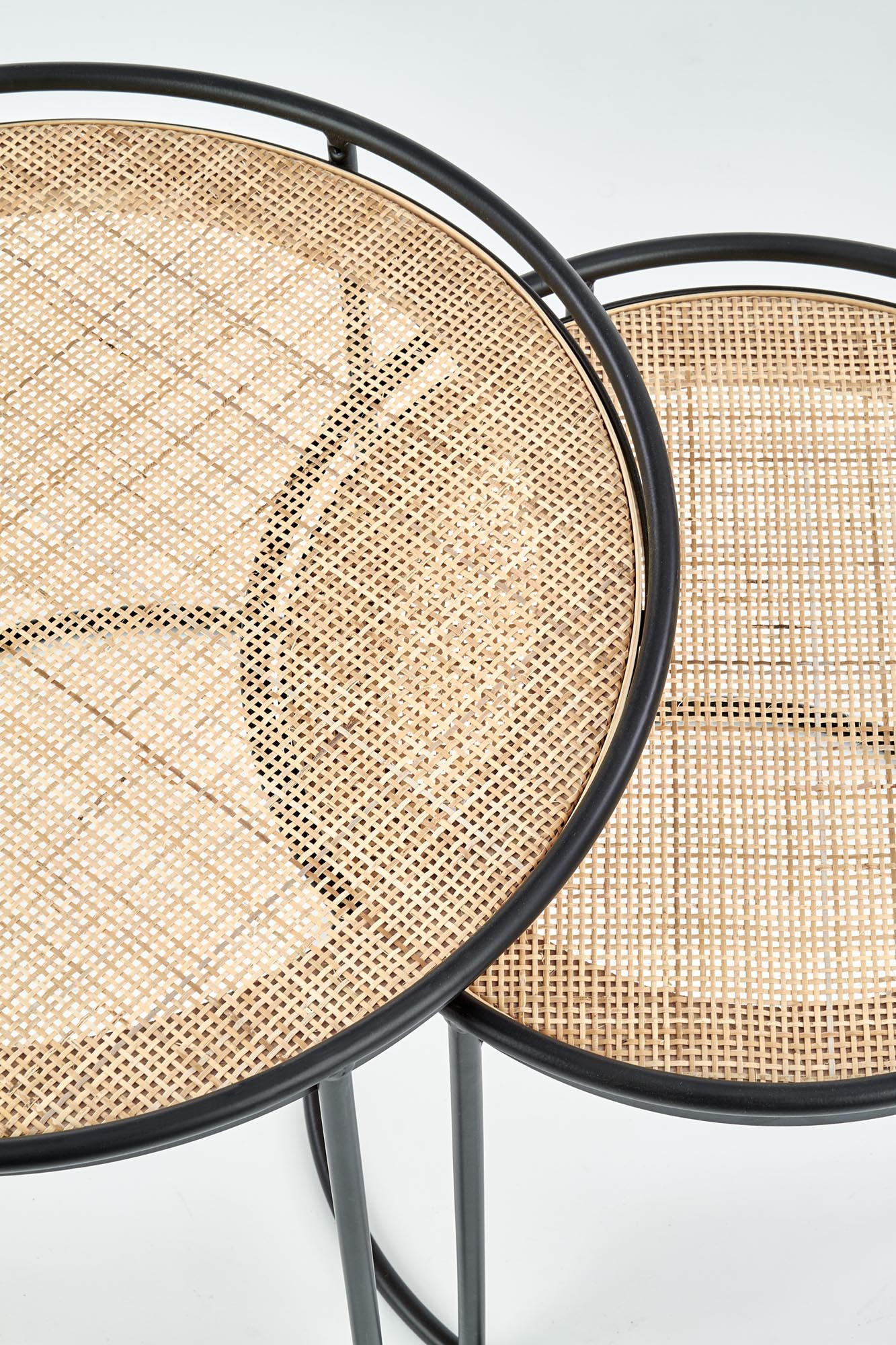 wymiary: 51/42, 41/37 cm, materiał: rattan naturalny / stal malowana proszkowo, kolor: naturalny - czarny