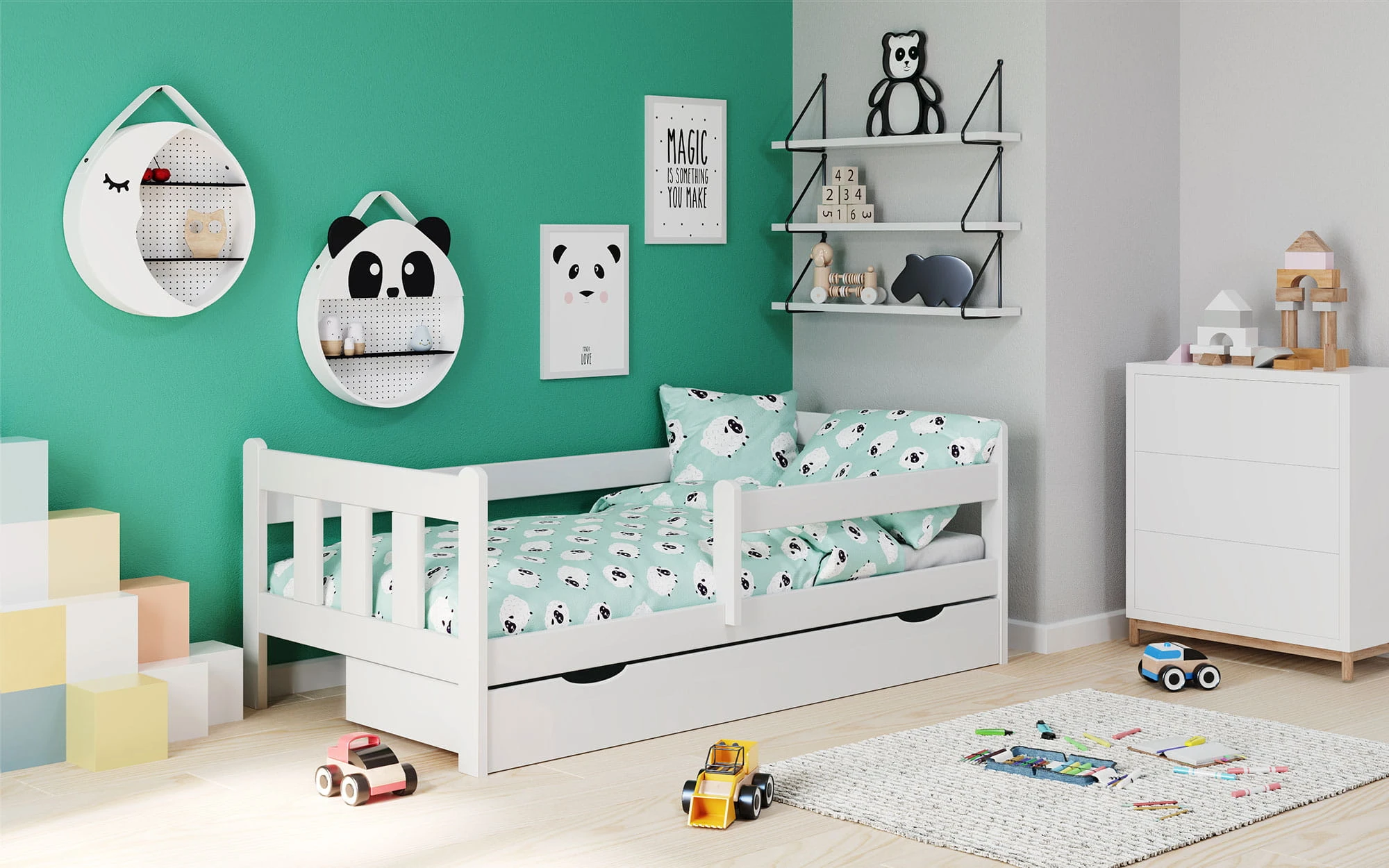 łóżko z wysuwaną szufladą, wymiary: 164/88/60 cm, materiał: drewno lite sosnowe lakierowane, kolor: biały
